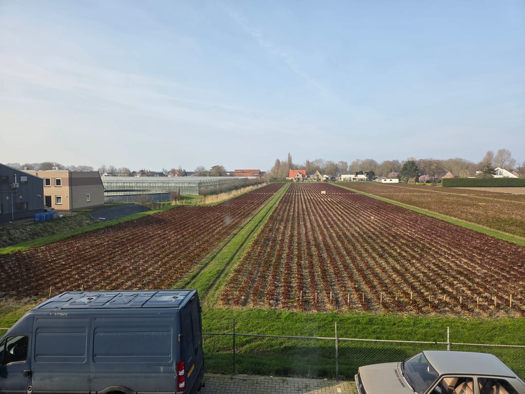 Op de verdieping een grote open ruimte met mogelijkheid voor een 2e toilet en toegang tot een afsluitbare, moderne kantoorruimte met prettig uitzicht over landerijen.
