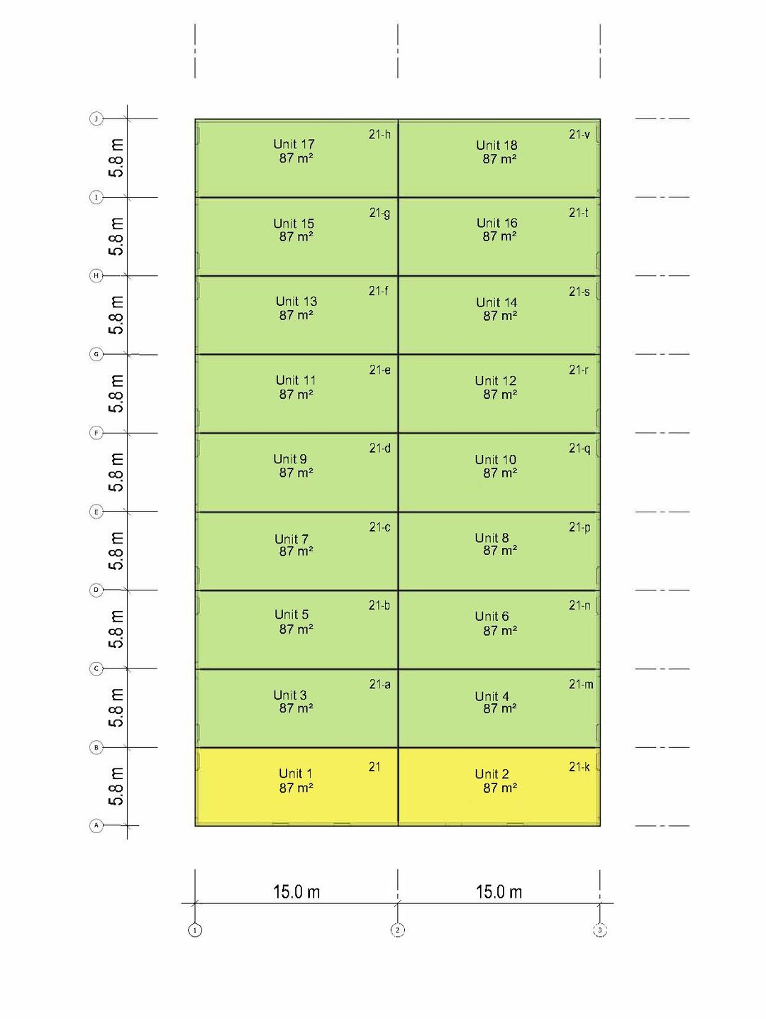 - Afmetingen unit: ca. 5,80 x 15,00 meter