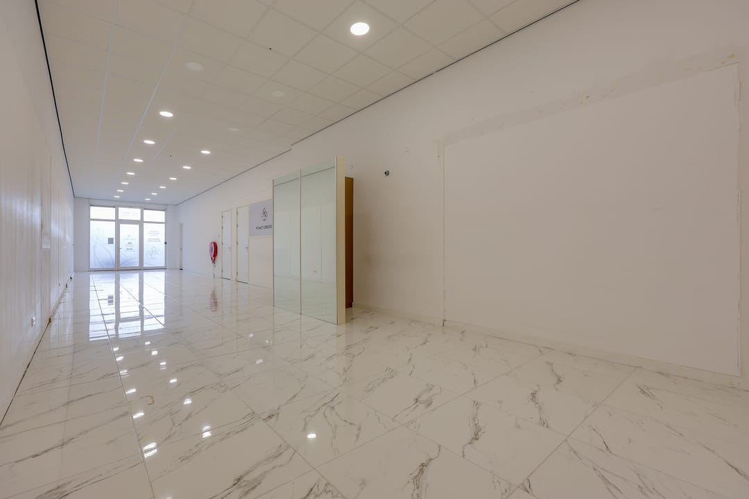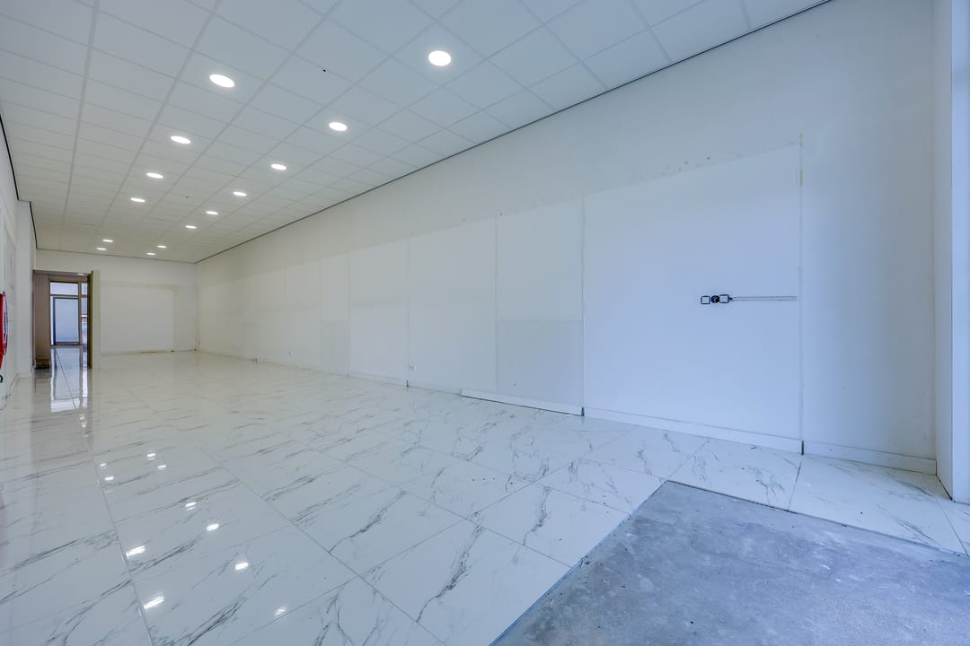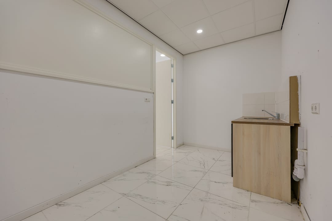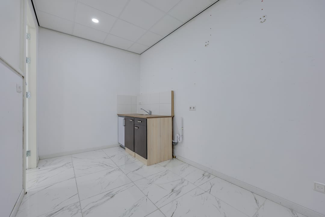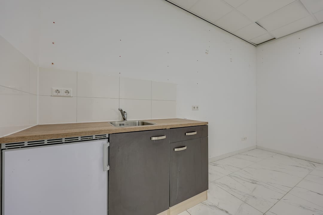 De bedrijfsruimte is voorzien van een plavuizenvloer met vloerverwarming, systeemplafond met verlichting, een brandslanghaspel en 2 eigen parkeerplaatsen voor de ingang.