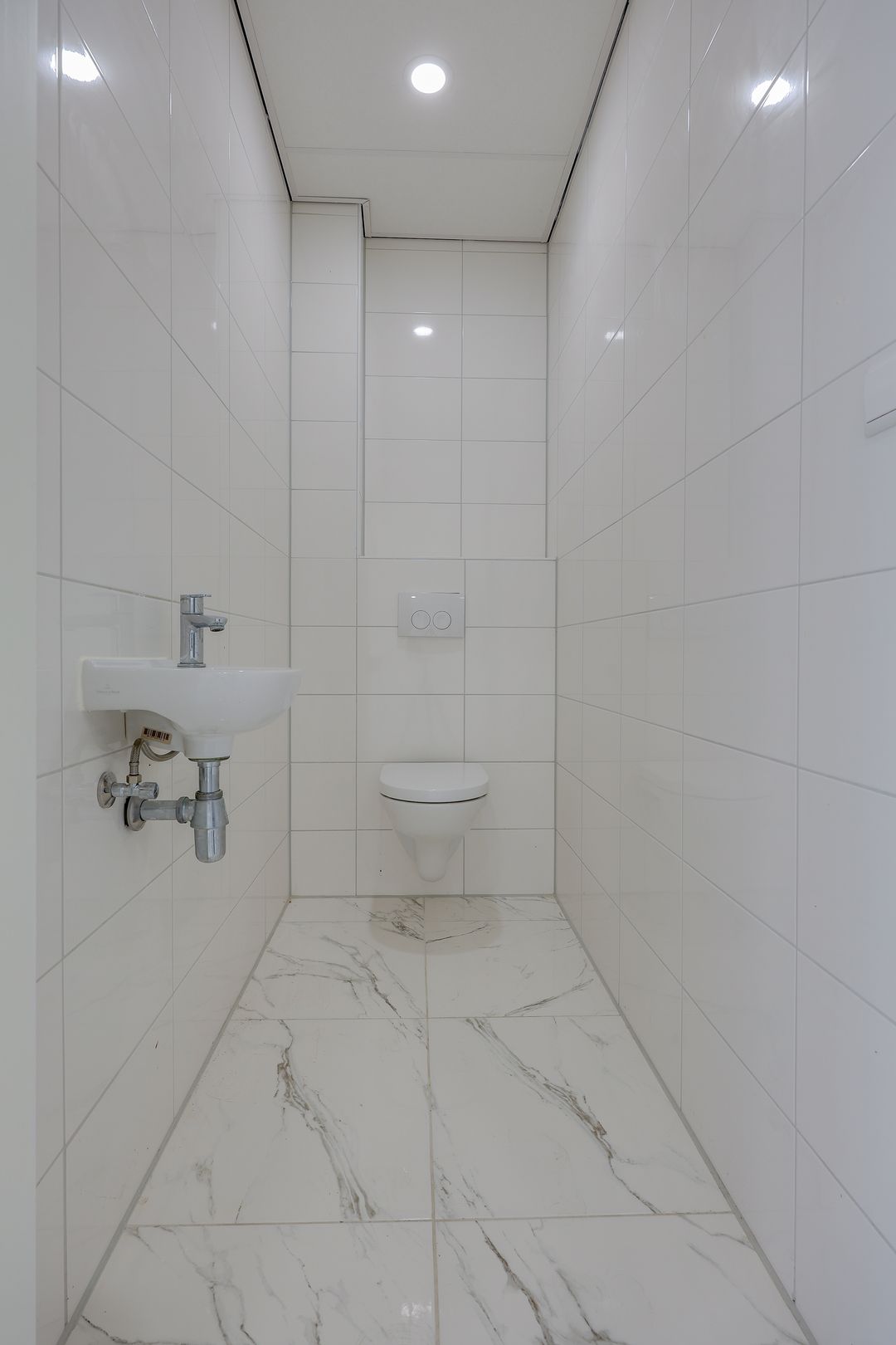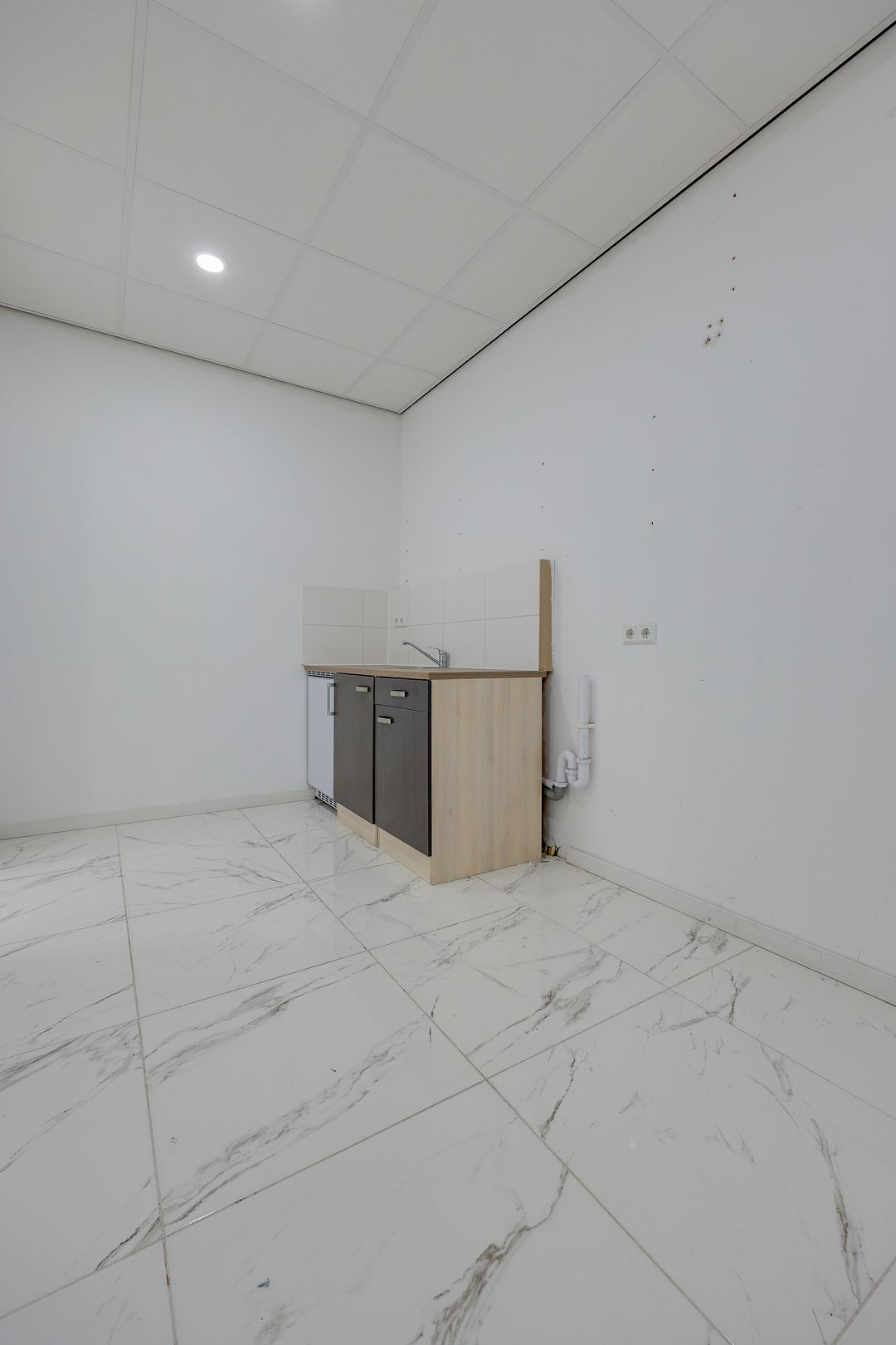 - Het object is grotendeels voorzien van een tegelvloer (marmerdesign)