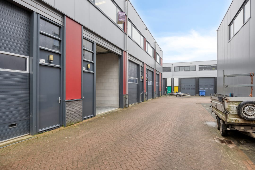 De bedrijfsruimte is toegankelijk via een elektrische overheaddeur en beschikt over een vrije, efficiënte indeling met een betonnen vloer en goede daglichttoetreding. De entresol biedt praktische aanvullende opslagmogelijkheden. Op de begane grond is tevens een toiletgroep aanwezig.