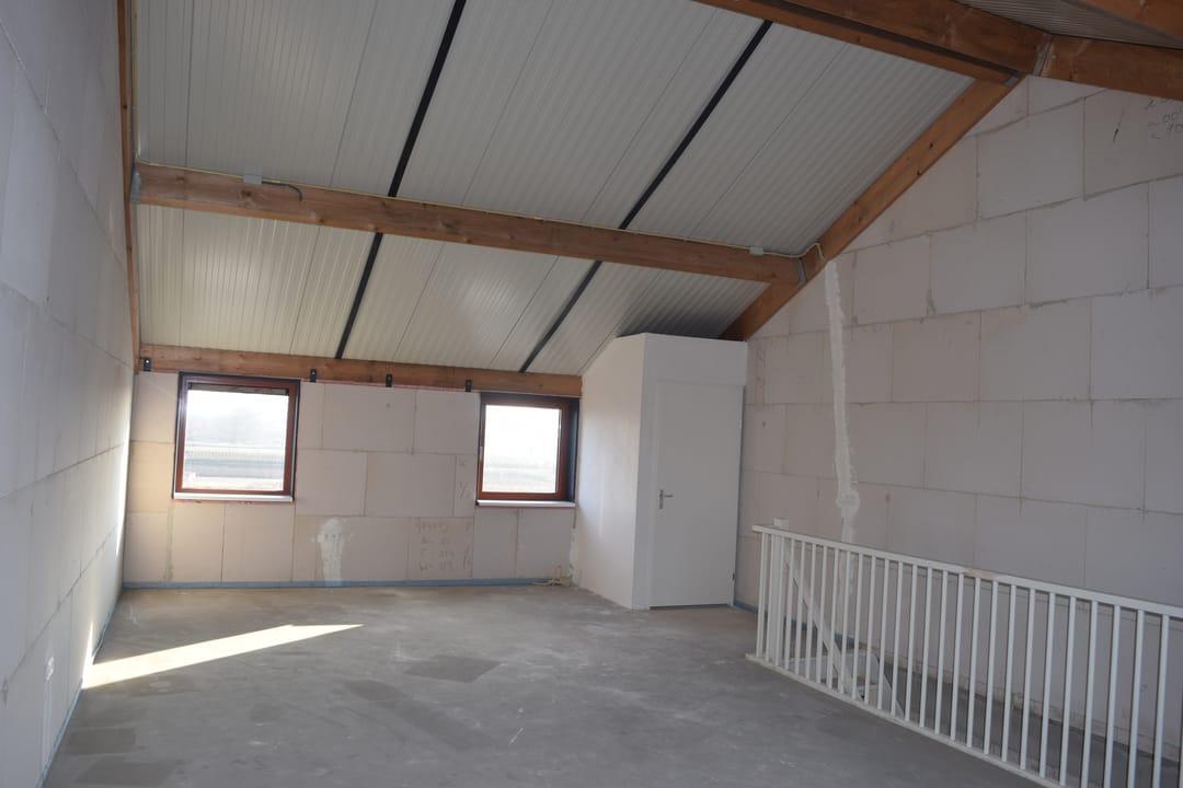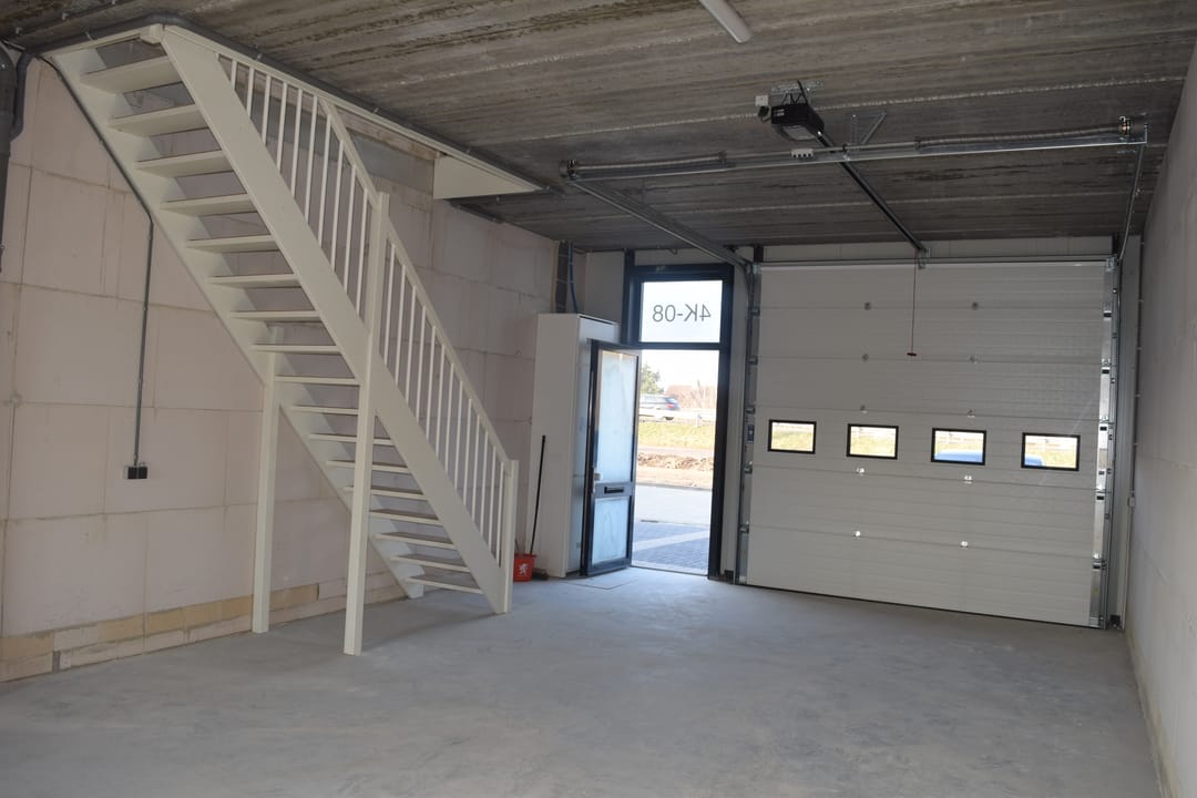 Bedrijfshal van ca. 55 m² met een hoogte van ca. 3,5 m. Voorzien van een meterkast (8 groepen en 2 aardlekschakelaars), een airco en een elektrische sectionaaldeur met afstandsbediening.,