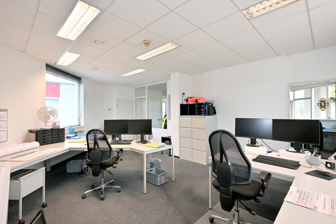 Het object bestaat uit een kantoorgebouw in 3 bouwlagen een daarop aangrenzende bedrijfsruimte en een vrijstaande bedrijfsruimte, met een gedeelte afsluitbaar buitenterrein.