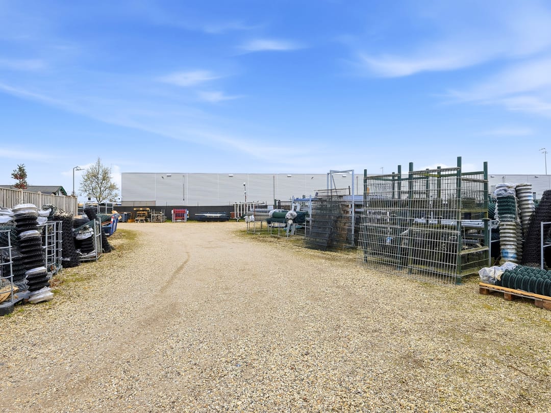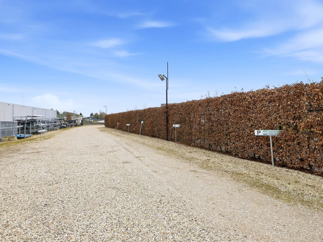 Het terrein beschikt over een tweede toegangspoort naar het bedrijfscomplex met kantoor, werkplaats, kantine en opslagloods, eveneens goed beveiligd en op afstand te monitoren.