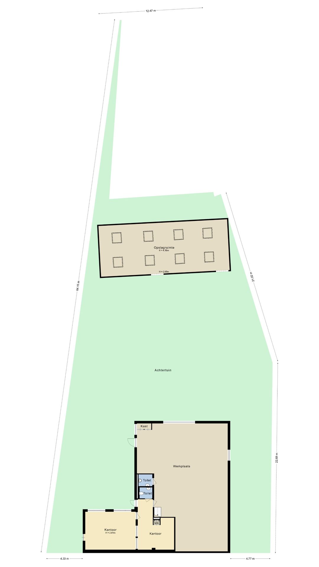 Gelegen op bestraat terrein tussen werkplaats en kantoor