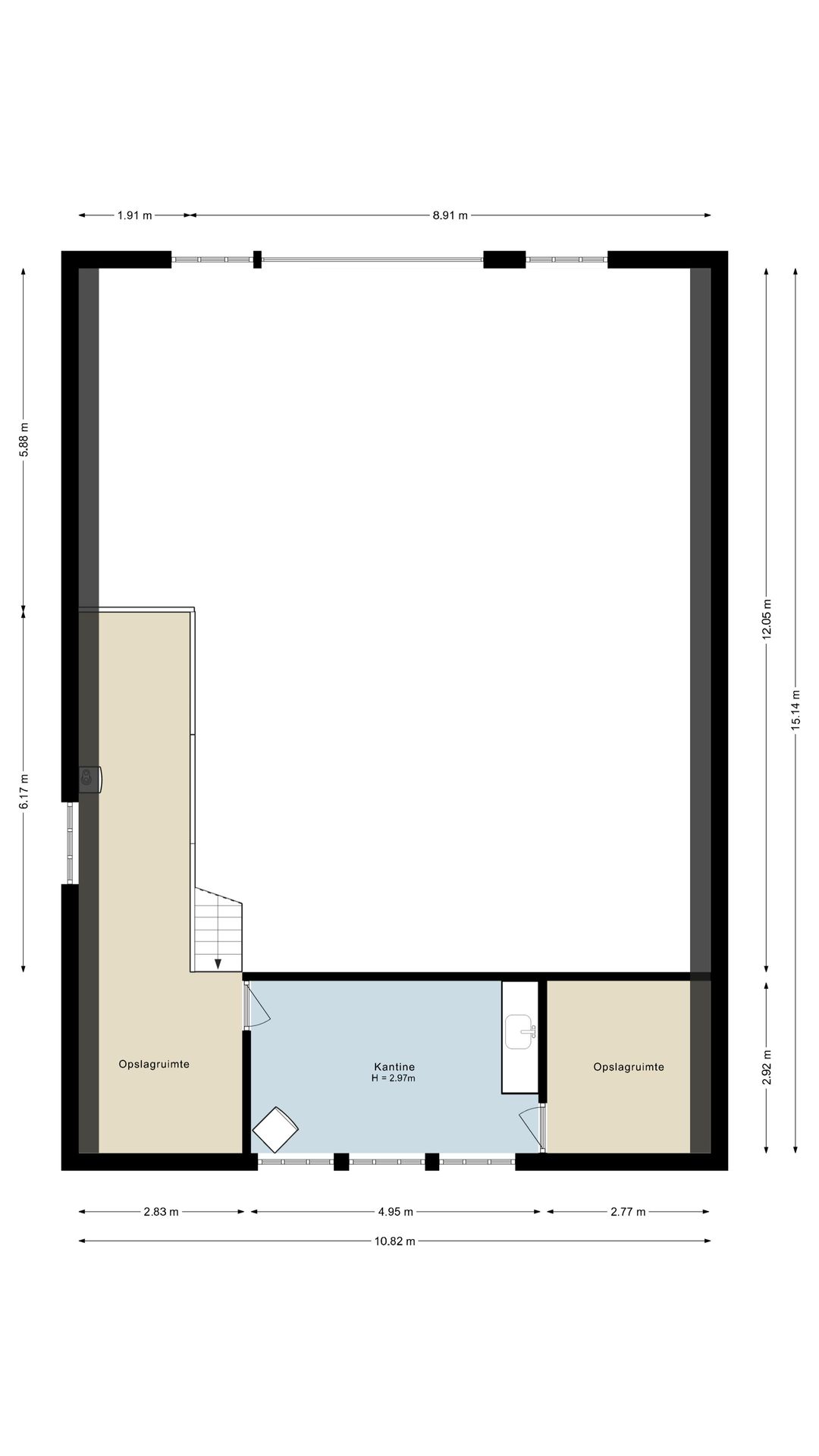 Ruimte voor opslag, laden en lossen aan de zijkant