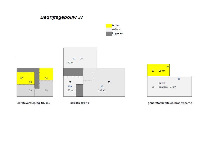 - 37M (30) bedrijfsruimte/kantoor op de verdieping verdieping 30 m² (met keukenblokje) € 2.000,- per jaar excl. BTW