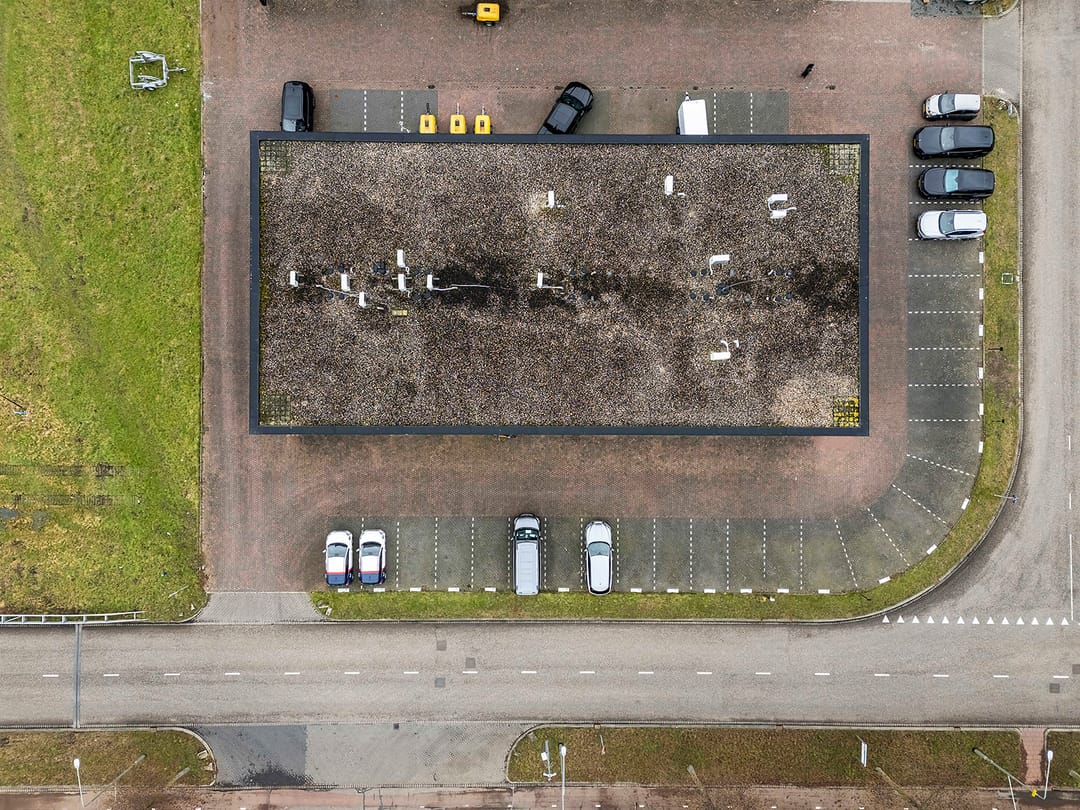 - geïsoleerd staaldak voorzien van bitumineuze dakbedekking met ballast laag;