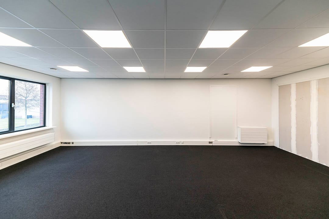 De bedrijfsruimte op de begane grond is o.a. voorzien van een betonvloer, een hand bedienbare overheaddeur en een vrije hoogte van ca. 3,30 meter. De kantoorruimte op de verdieping beschikt o.a. over een systeemplafond met ledverlichting, airco split-unit ten behoeve van koelen en verwarmen, verwarming door middel van een warmtepomp, een pantry, betegelde toiletruimte en zonwerende screens aan de buitenzijde.