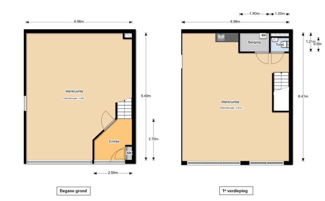 - vrije hoogte op de begane grond ca. 3,30 meter en vrije hoogte op de verdieping onder het systeemplafond ca. 2,65 meter;