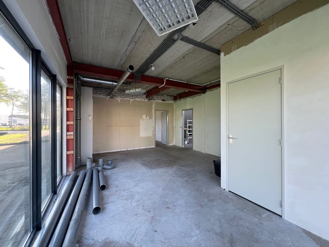 - indeling: entree/ontvangstruimte met toiletgroep, pantry en doorgang naar de bedrijfsruimte, alsmede een afsluitbaar kantoorcompartiment;