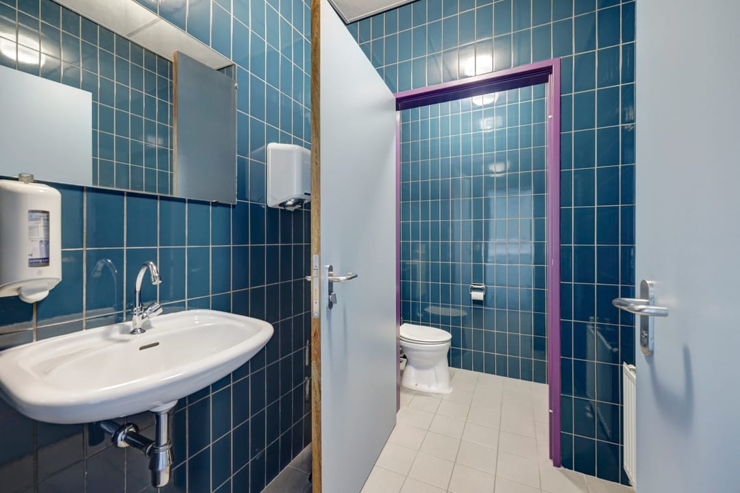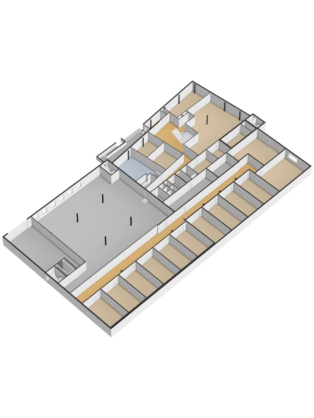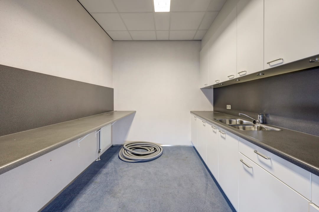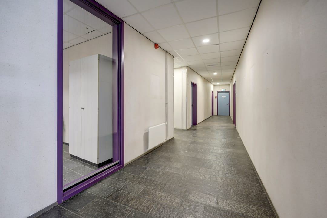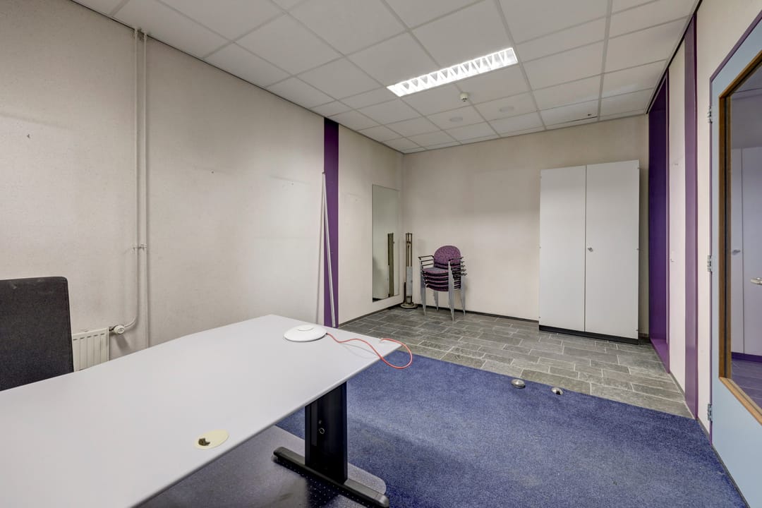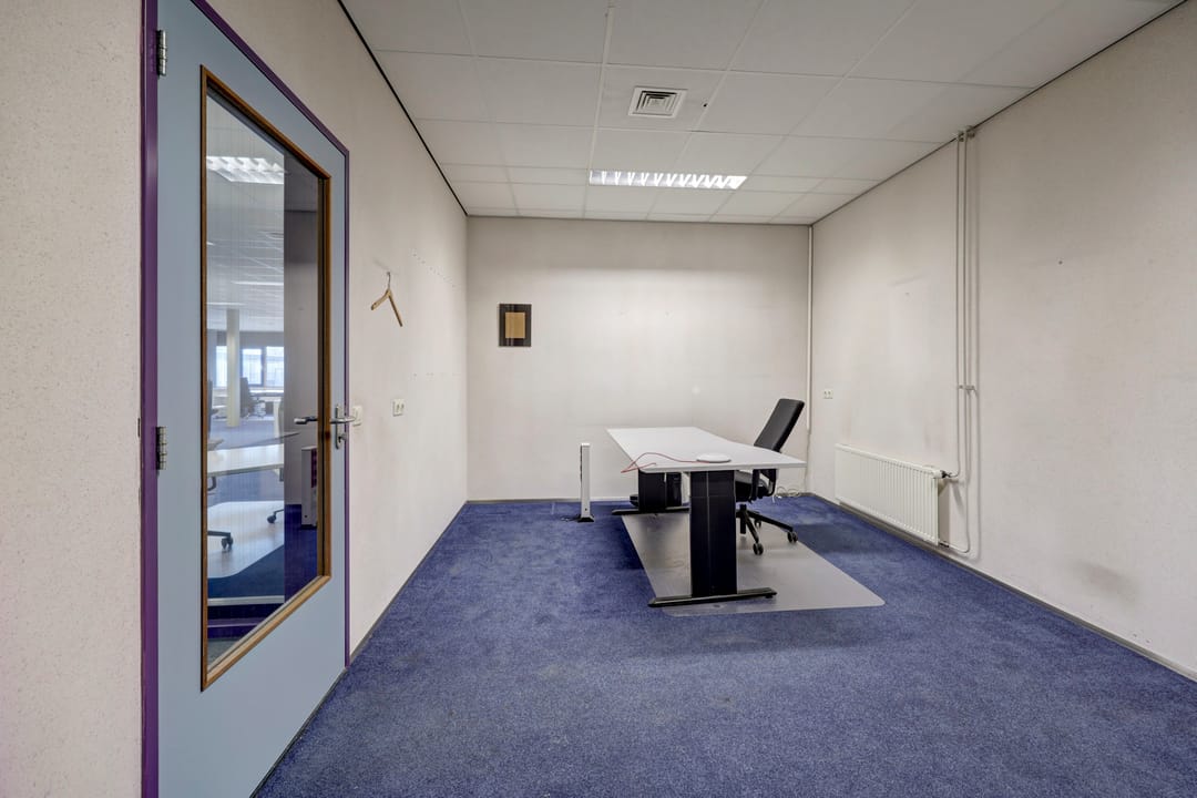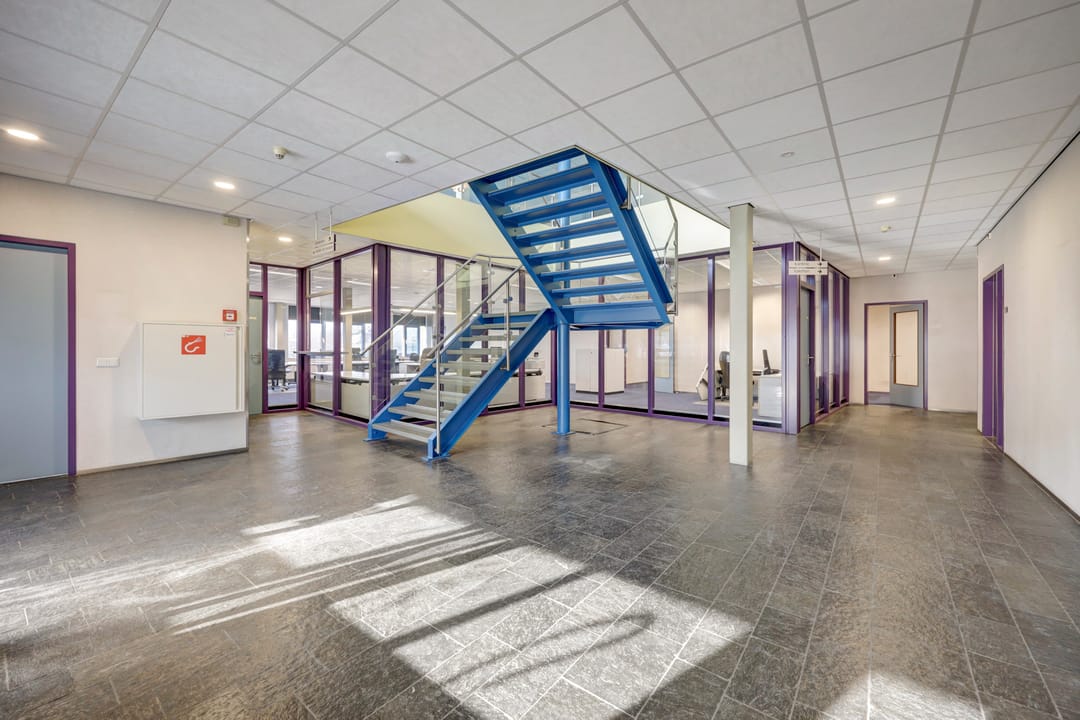 Vanuit de algemene entree biedt een fraaie trapopgang met vide toegang tot de kantoorruimte op de verdieping. achter de kantoorruimte is een grote bedrijfsruimte gesitueerd welke vanuit het trappenhuis en de lift vanuit de lager gelegen bedrijfsruimte bereikbaar is. Ook deze verdieping beschikt over een toiletgroep, patchkast, archiefruimte en keuken.