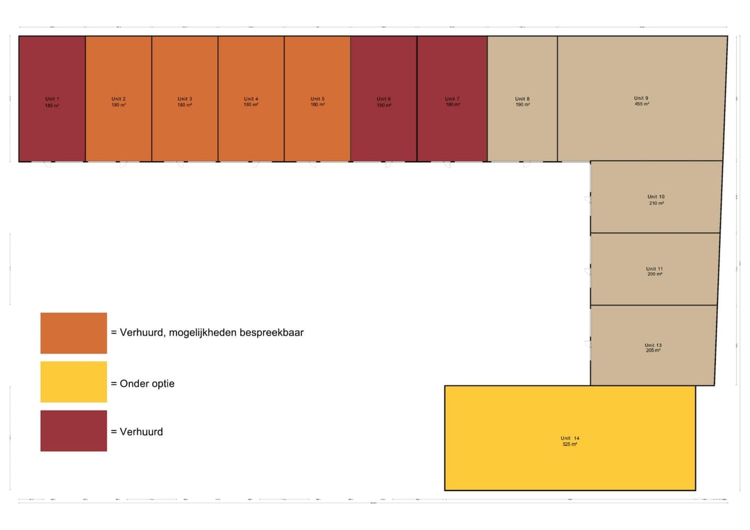 De bedrijfshallen variëren wat betreft de indeling en oppervlakte, huur is mogelijk vanaf 180 m². Dankzij de flexibele indelingsmogelijkheden kunnen units worden gecombineerd tot dubbele of grotere oppervlakten, zodat maatwerkoplossingen mogelijk zijn.