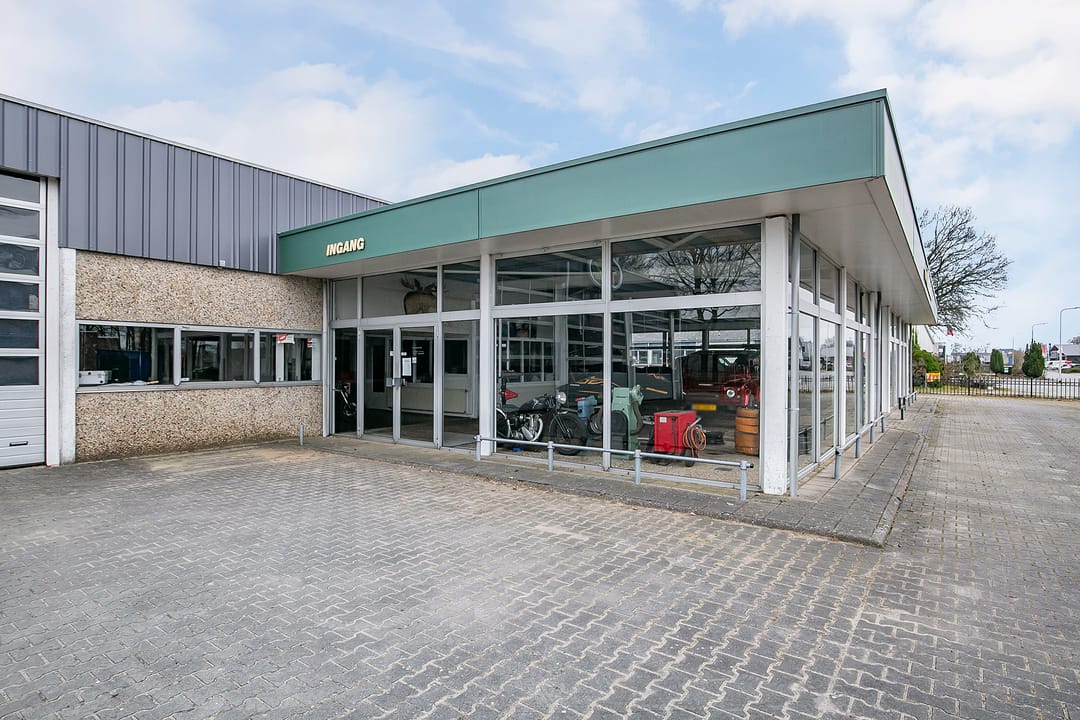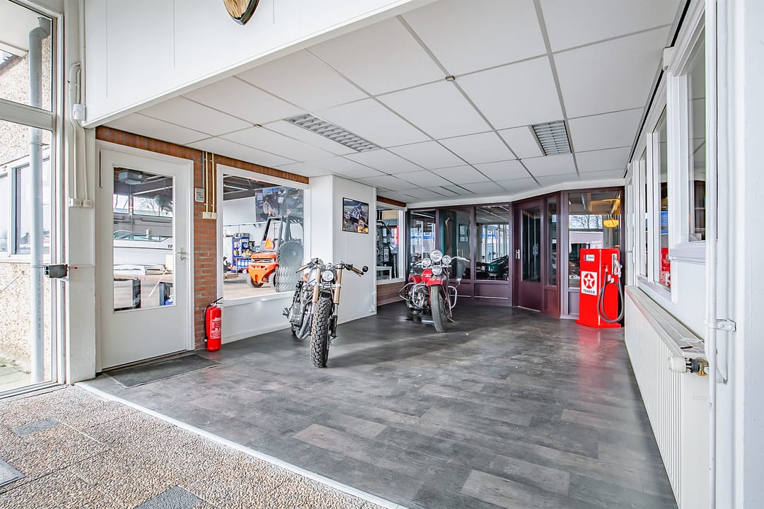 Op een centrale locatie met een goede doorgangsweg, staat dit bedrijfspand met royaal buitenterrein. Het bedrijfspand is voorzien van een ruime showroom met veel lichtinval, een kantoorruimte, werkplaats met verdieping voor opslag, inpandige wasstraat voor 1 auto en 4 overheaddeuren. Het pand heeft daarnaast een sfeervolle kantine/ multifunctionele ruimte voorzien van een bar. De perceeloppervlakte betreft circa 2.514 m² en het pand heeft een oppervlakte van circa 854 m².