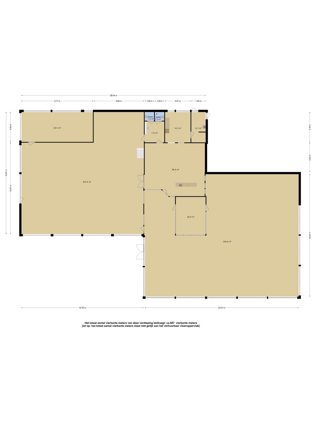 - Begane grond: circa 687 m²