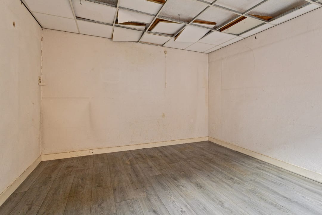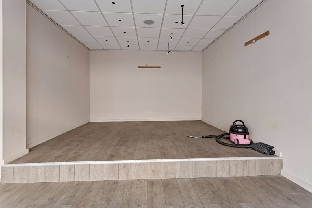 Representatieve winkelruimte met een brede etalage over de volledige gevelbreedte. De showroom is voorzien van een systeemplafond en laminaatvloer. Verder beschikt de begane grond over meerdere opslagruimtes, toiletruimte, een inbouwkeuken met cv-combiketel, en toegang tot een besloten stadstuin. Aan de rechterzijde bevindt zich een tweede entree met doorgang naar de achtergelegen berging.