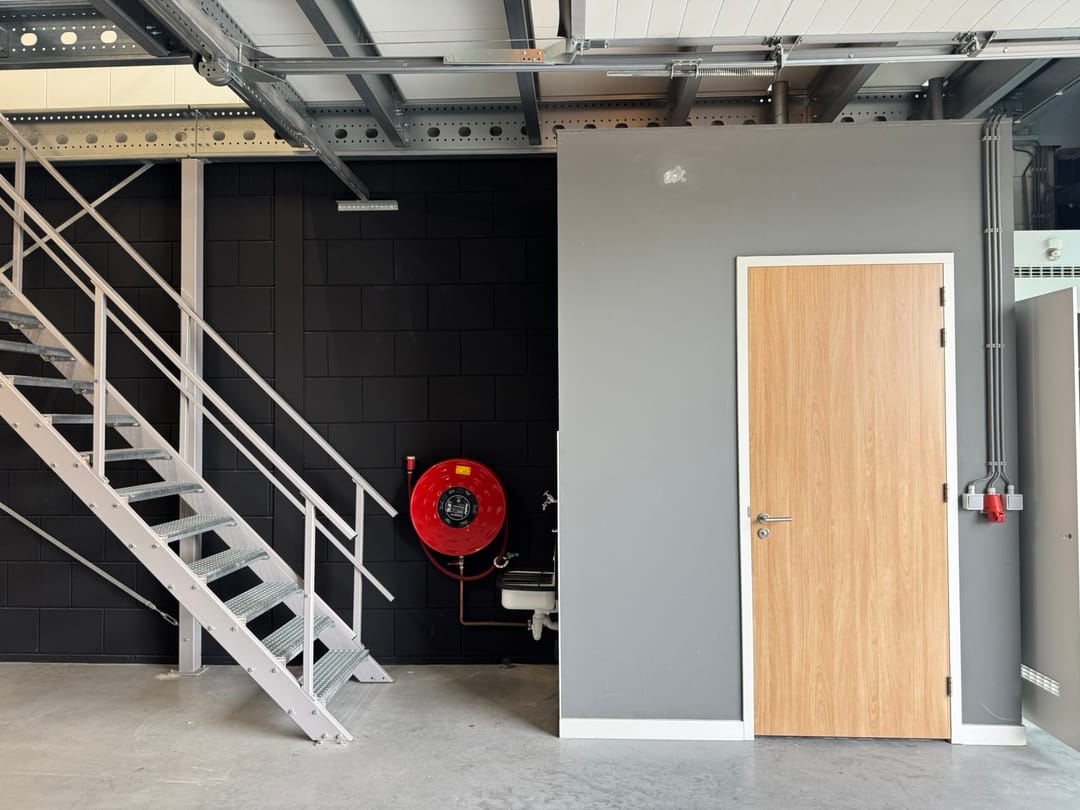 De bedrijfsruimte is voorzien van een monoliet afgewerkte betonvloer (maximale vloerbelasting 1.500 kg/m²), een vrije hoogte van ca. 3.29 meter, ledverlichting, elektrisch bedienbare overheaddeur, een betegelde toiletruimte en afgedopte afvoeren ten behoeve van een pantry.