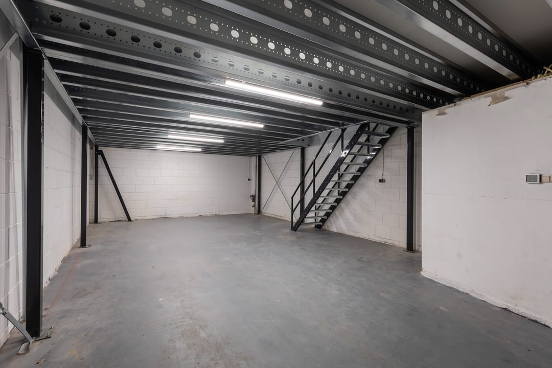 Functionele bedrijfsruimte met een entresolvloer. Het pand is aan de Mandenmakerstraat op bedrijventerrein Gardering in Hoogvliet Rotterdam.