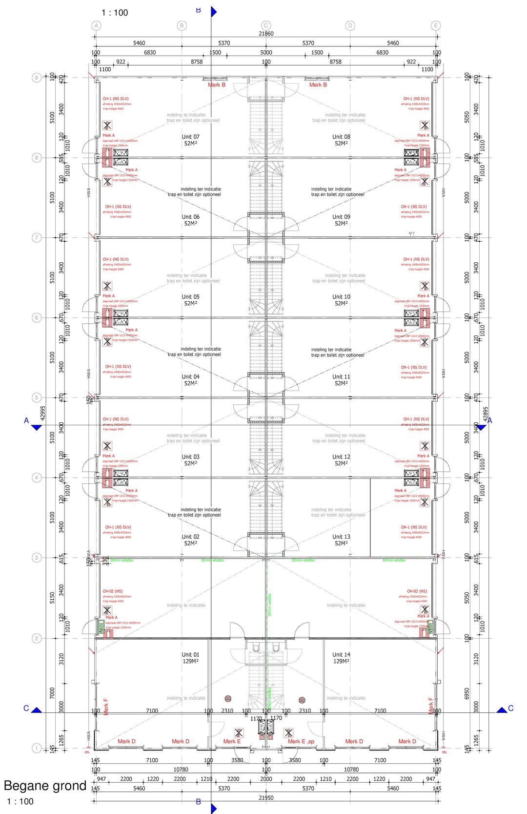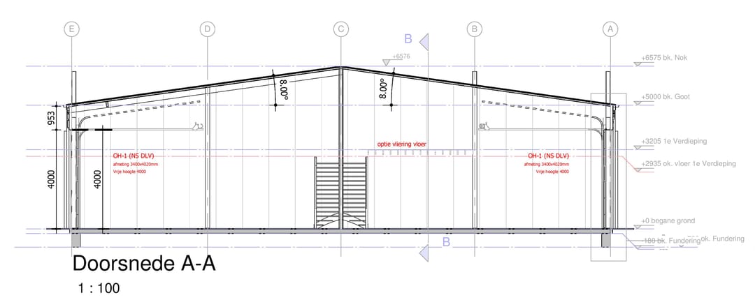- Vrije hoogte: ca. 5,5 m¹ (onder 3 m¹ en boven 2,5 m¹);
