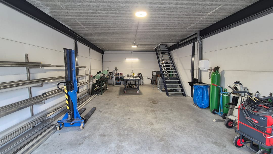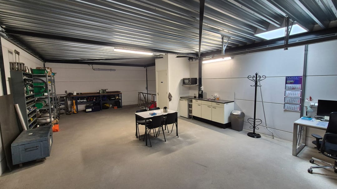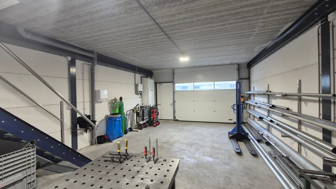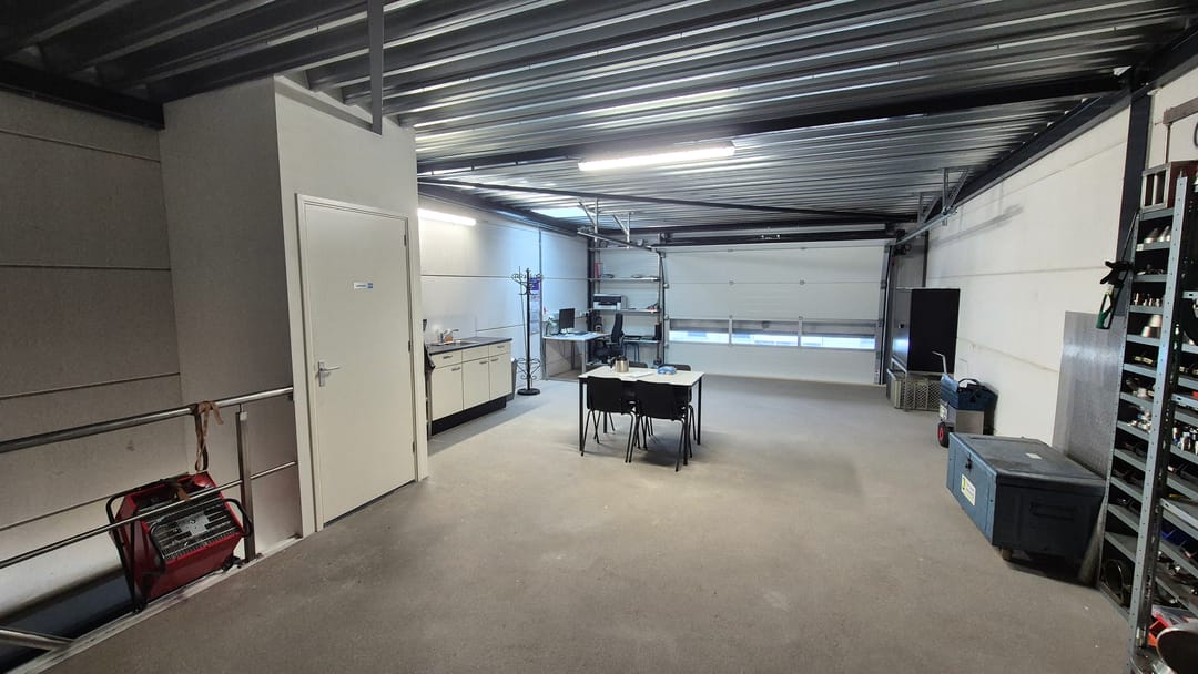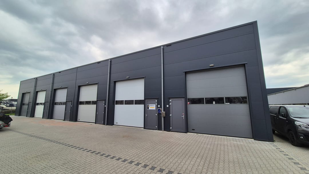 De unit is gelegen aan de voorzijde van het middelste gebouw en is groter dan de meeste units. De unit heeft namelijk een oppervlakte van ca. 66 m² op de begane grond en ca. 66 m² op de verdieping. De bedrijfsunit is opgeleverd met een elektrische overheaddeur met afstandsbediening, meterkast met elektra- en water aansluiting en een volledige betonnen verdiepingsvloer inclusief cementdekvloer. Daarna is de unit voorzien van LED-verlichting, een toilet, keukentje, een dakkoepel, stalen verdiepingstrap en maarliefst 20 zonnepanelen!