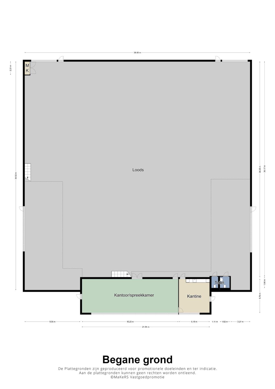 Deze informatie is met zorg samengesteld. Voor de juistheid daarvan kan echter geen aansprakelijkheid worden aanvaard, noch kan aan de vermelde gegevens enig recht worden ontleend. Alle opgegeven afmetingen zijn indicatief. Deze informatie dient slechts als uitnodiging om in onderhandeling te treden en kan derhalve niet worden beschouwd als een aanbod of offerte. NB: Foto's van de interne situatie zijn van een eerder situatie, gezien de geheimhouding van de huidige huurder.