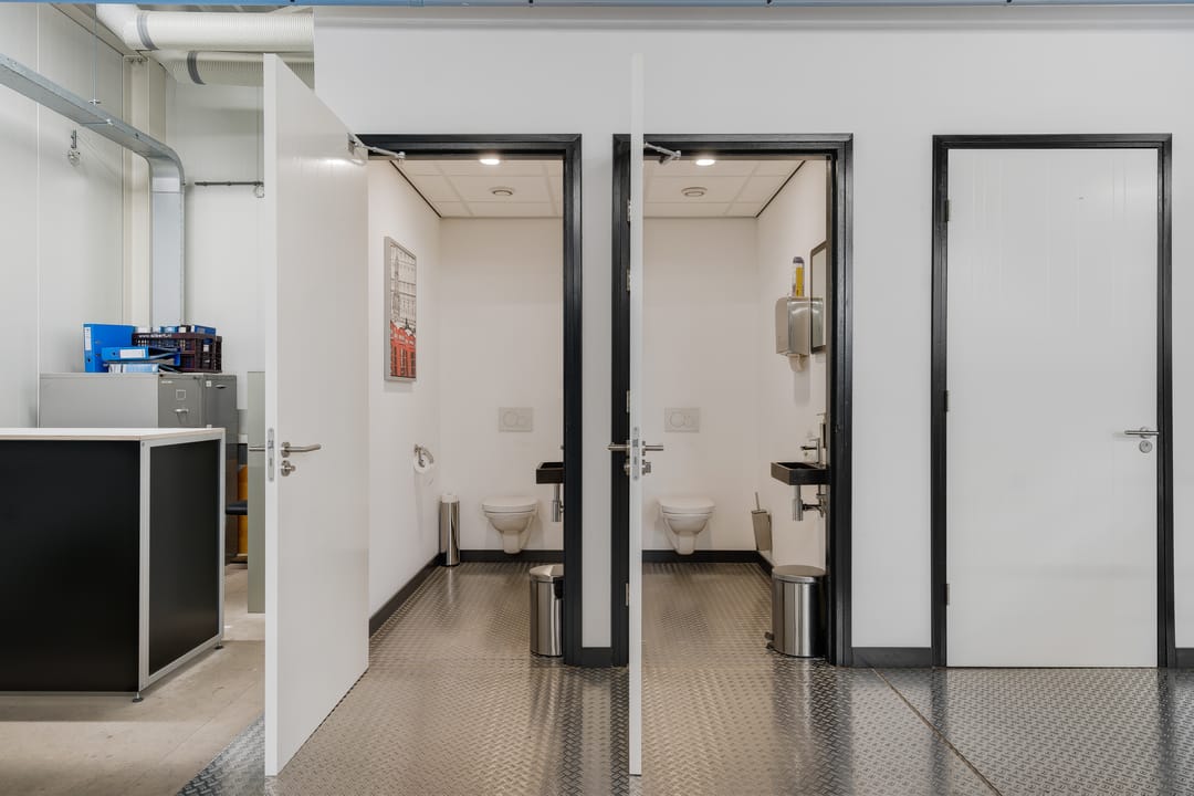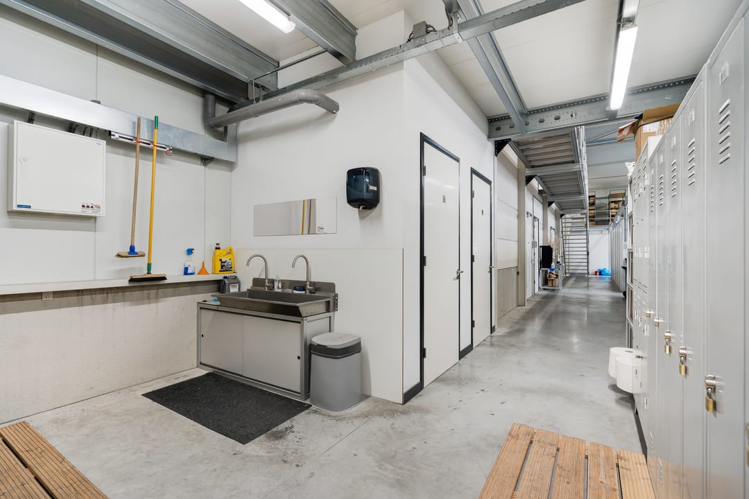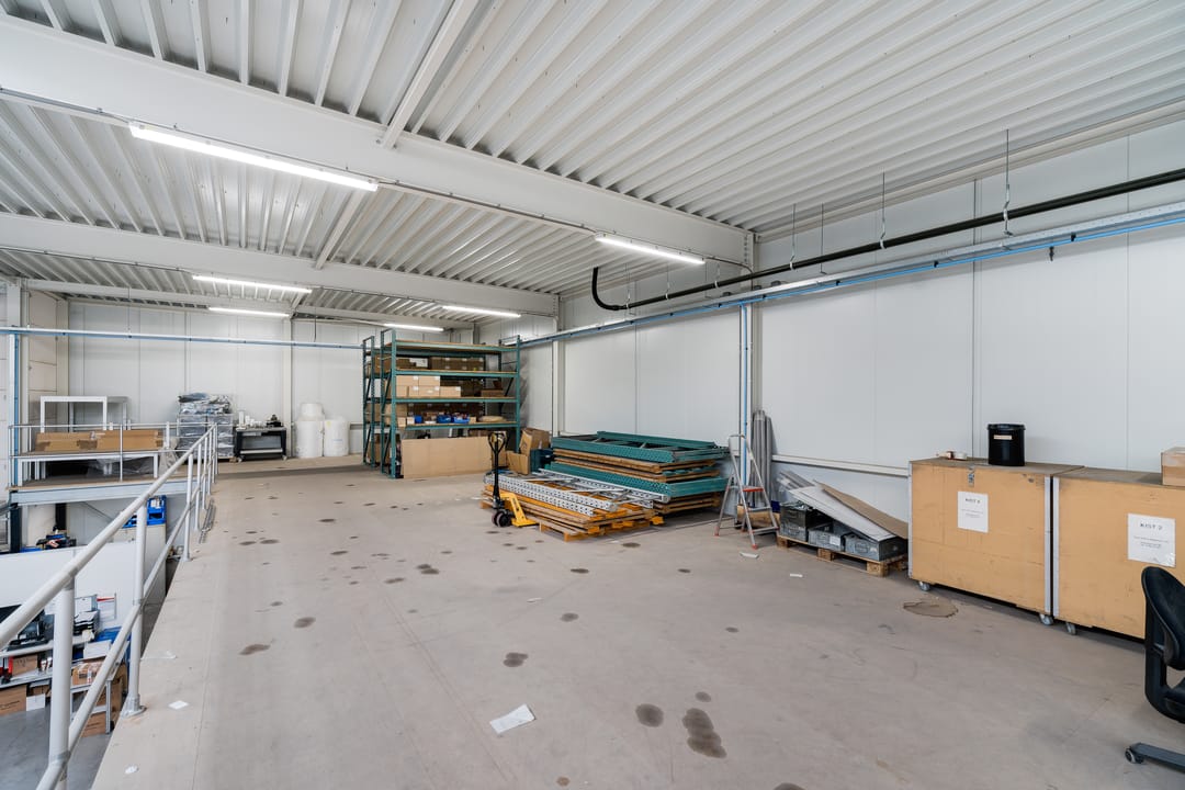 De bedrijfsruimte beschikt over een vrije overspanning van circa 19 meter en een vrije hoogte van circa 7 meter (onder de spanten). In de bedrijfsruimte zijn twee entresolvloeren gerealiseerd, waarvan één is voorzien van sanitaire voorzieningen (dames / heren) en een technische ruimte.