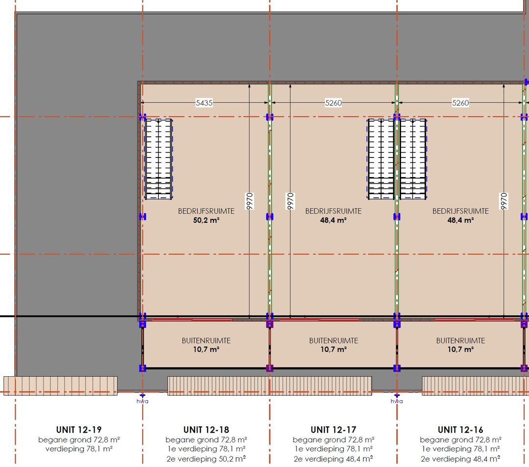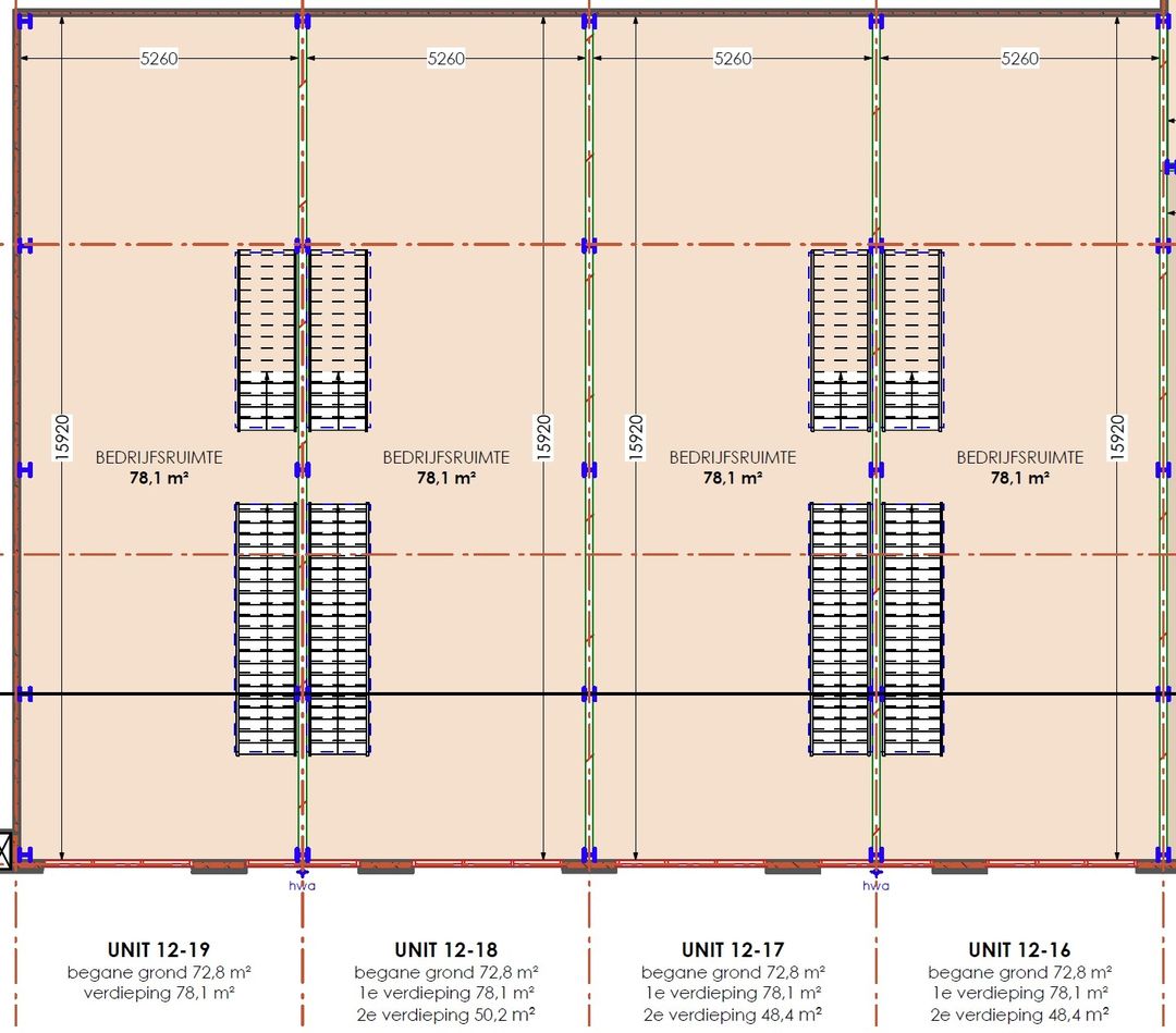 NB: Oppervlaktes zijn indicatief (ca. BVO), inclusief verdiepingen en eventuele dakterrassen. Units kunnen worden gekoppeld.