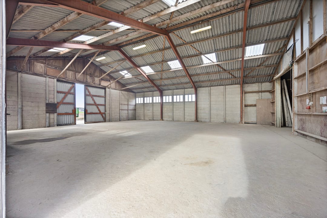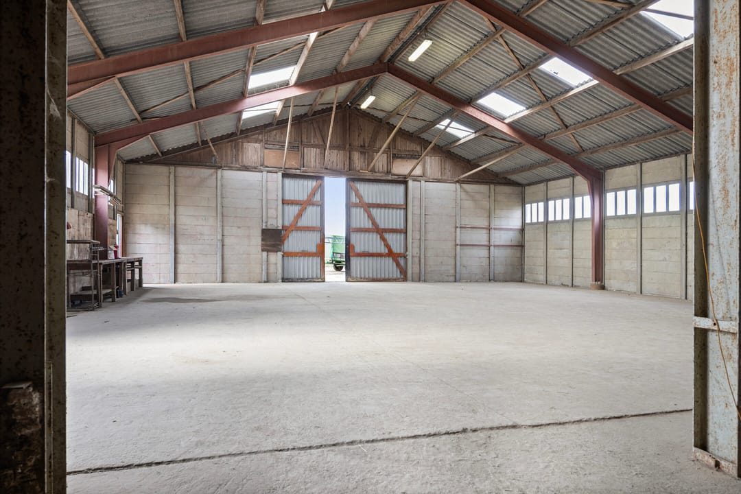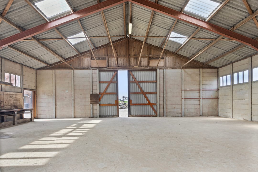 (Opslag)ruimte van ca. 477 m2 in een (voormalige) landbouwschuur met twee grote schuifdeuren en een loopdeur op goede locatie gelegen aan de "Buitenom" tussen de dorpen Piershil en Nieuw-Beijerland.