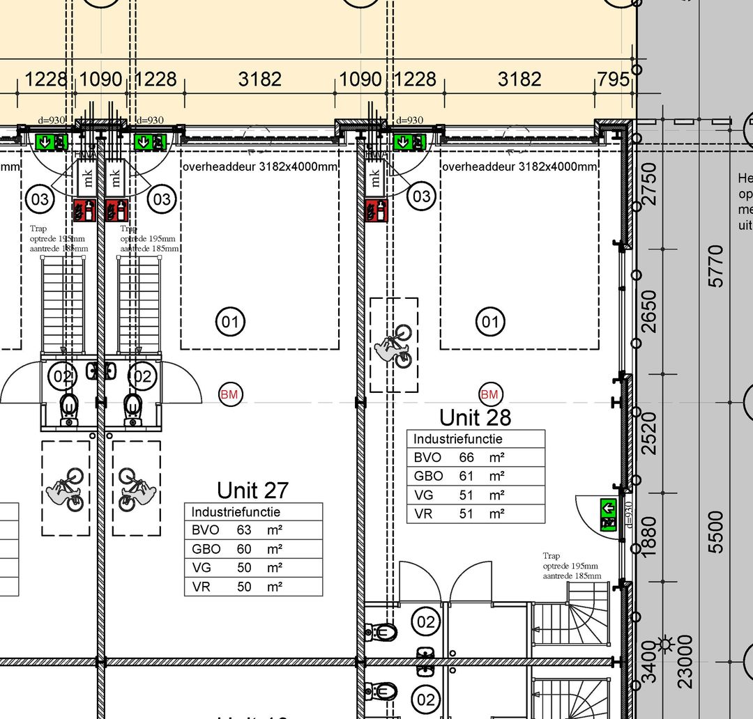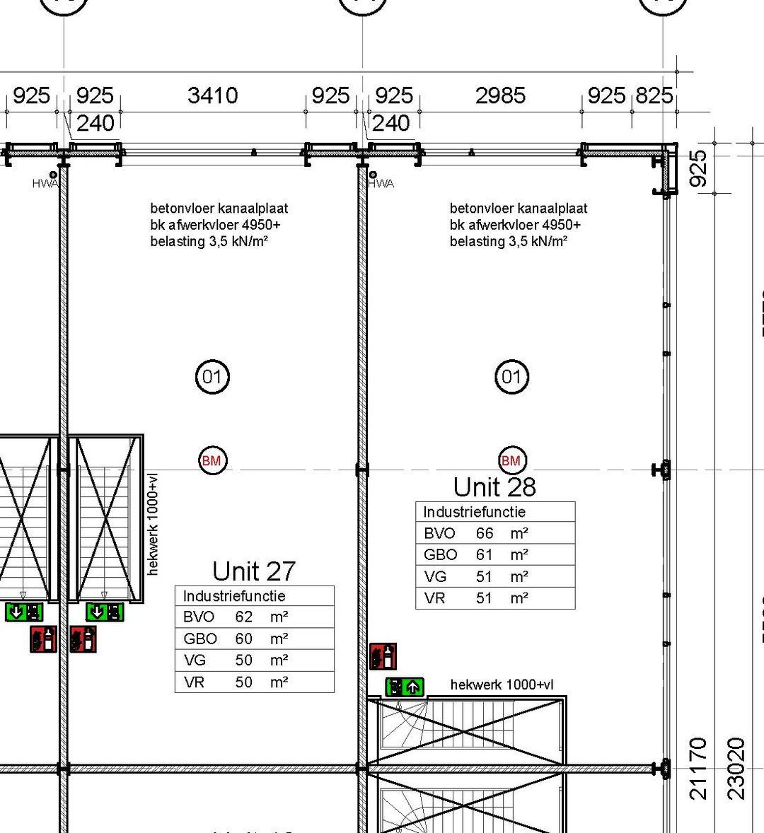 - monoliet afgewerkte betonvloer met een maximale vloerbelasting van 1.000 kg/m²;
