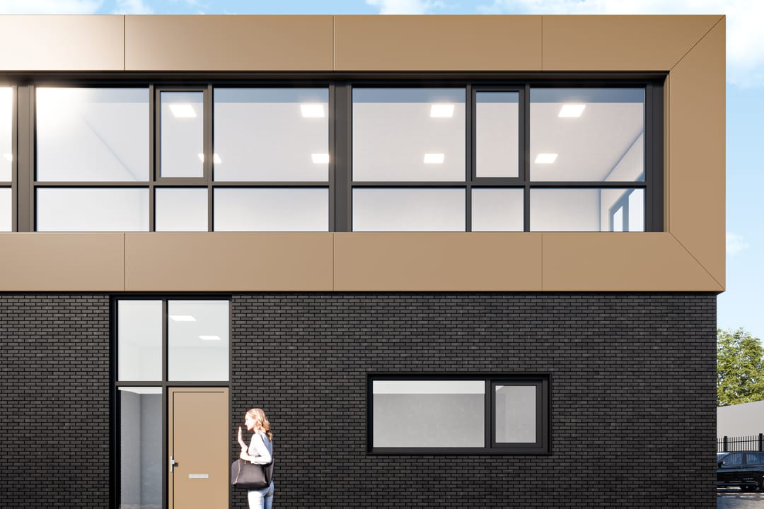 - gevels begane grond metselwerk met daarboven sandwichpanelen, geïsoleerde gevelbeplating (Rc-4,7) en deels hout sierelementen;