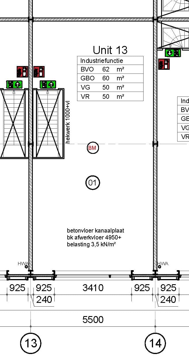 - monoliet afgewerkte betonvloer met een maximale vloerbelasting van 1.000 kg/m²;