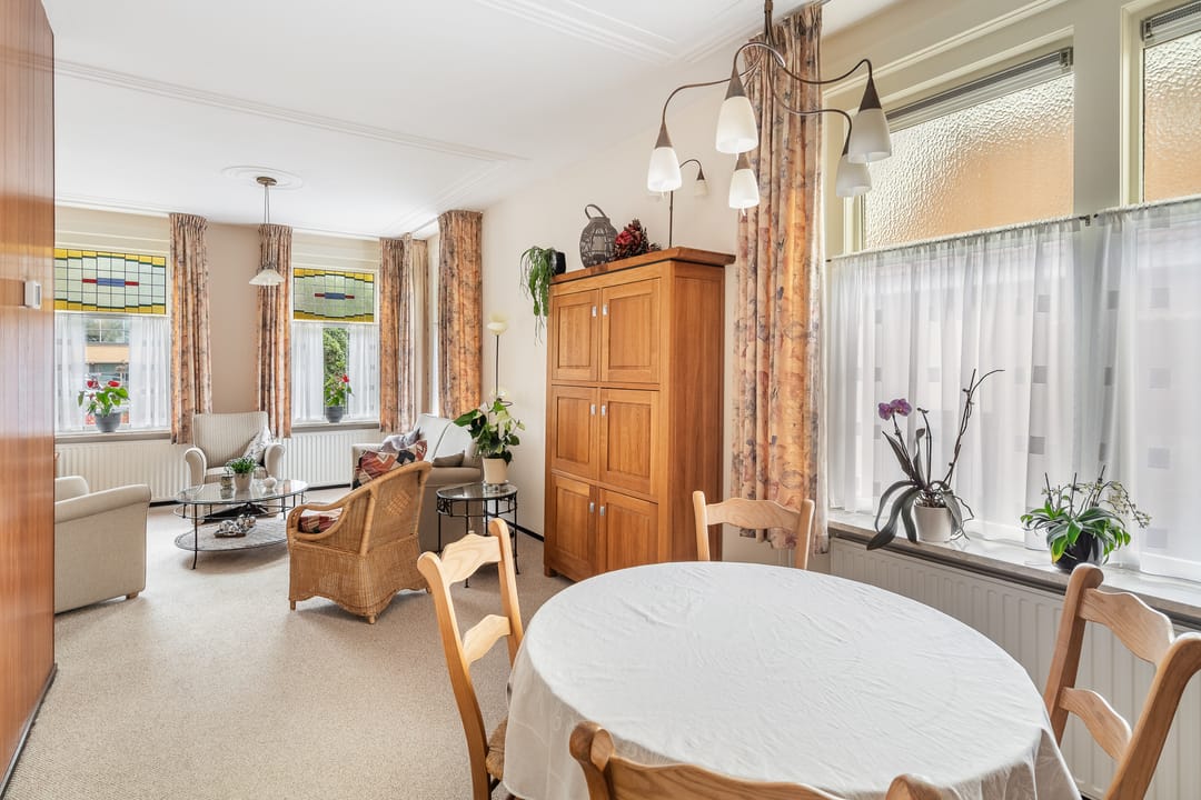 De karakteristieke glas-in-loodramen en de houten luiken bij de ramen geven de woning zijn herkenbare uitstraling. Deze zijn uitgevoerd met dubbelglas waarin het glas-in-lood is verwerkt, waardoor je de authentieke sfeer nog altijd goed kunt ervaren.