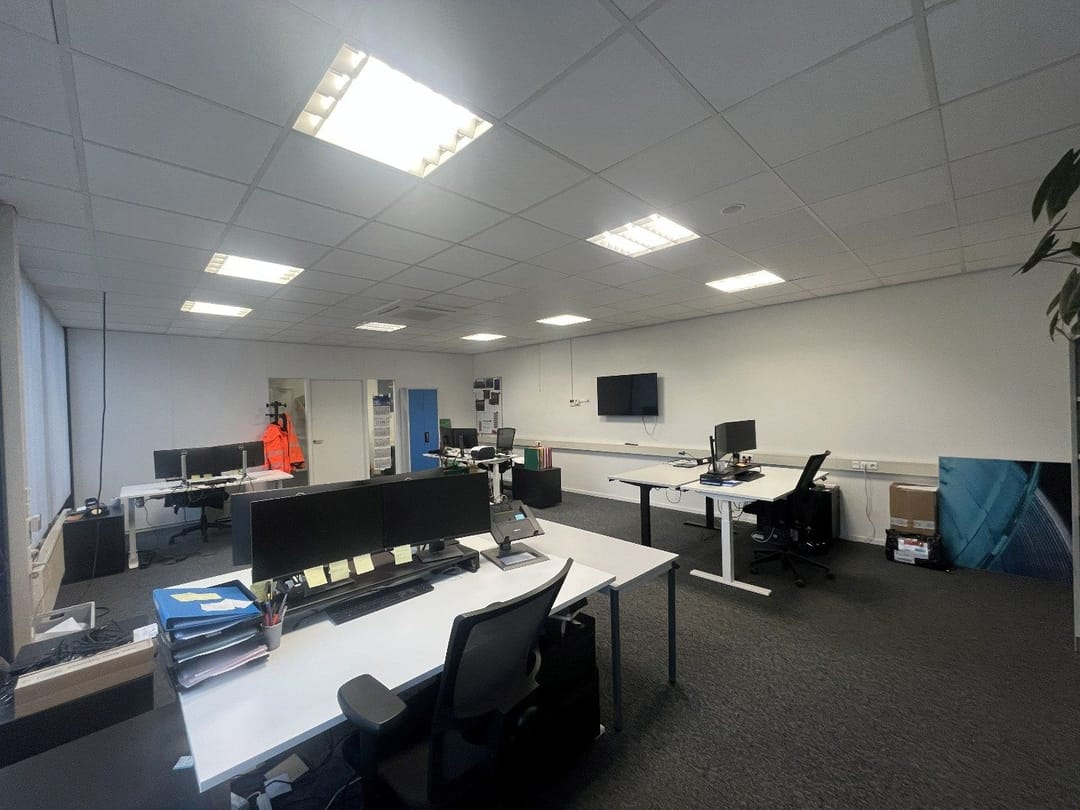 De kantoren zijn verdeeld over de begane grond en 1ste verdieping, die overwegend gesitueerd zal zijn op verdieping. Wat betreft de afwerking wordt gedacht aan systeemplafonds v.v. LED-verlichtingsarmaturen, airconditioning, kitchenette, toiletfaciliteit.