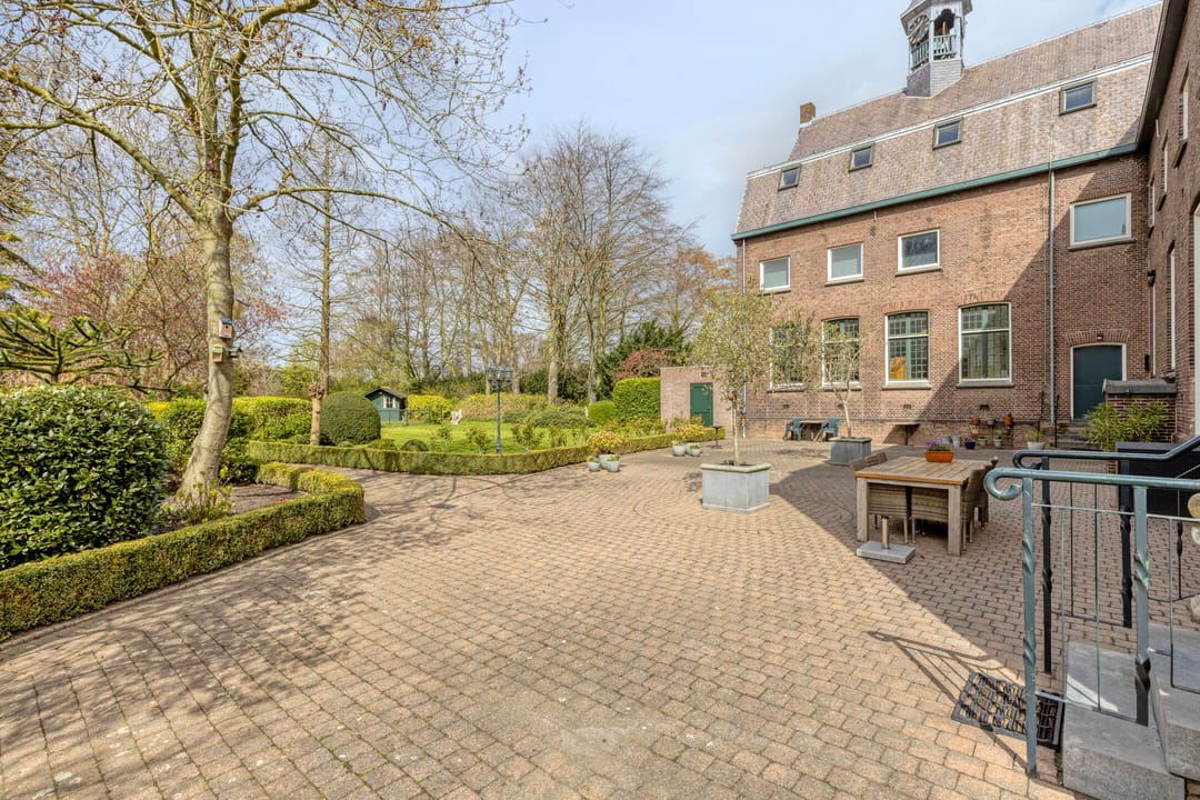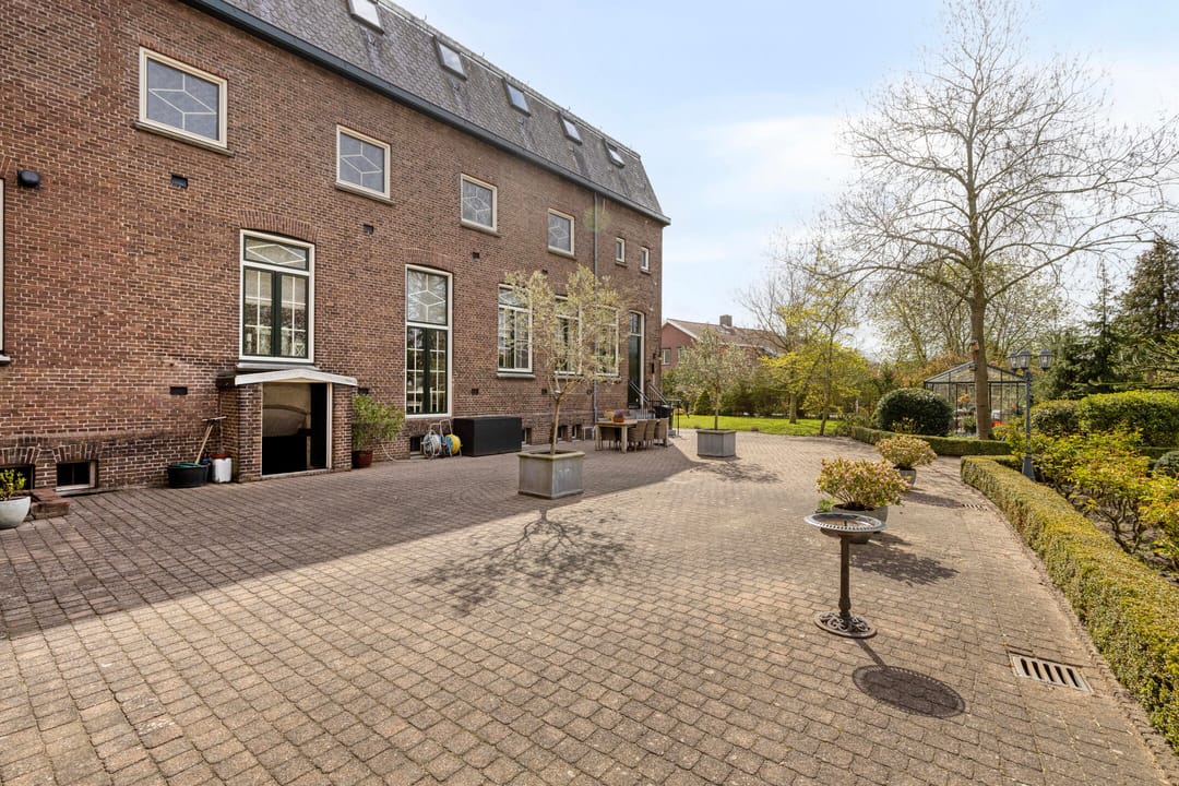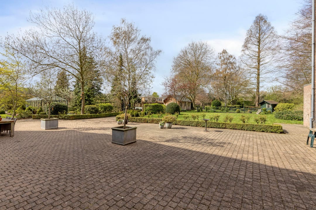 Ook buiten is het complex verzorgd ingericht. Het omliggende terrein is netjes aangelegd en biedt ruime parkeergelegenheid op eigen grond. De omvang van het perceel biedt mogelijk ook perspectief voor toekomstige ontwikkelingen, uiteraard in overleg met de gemeente en binnen de geldende planologische kaders.