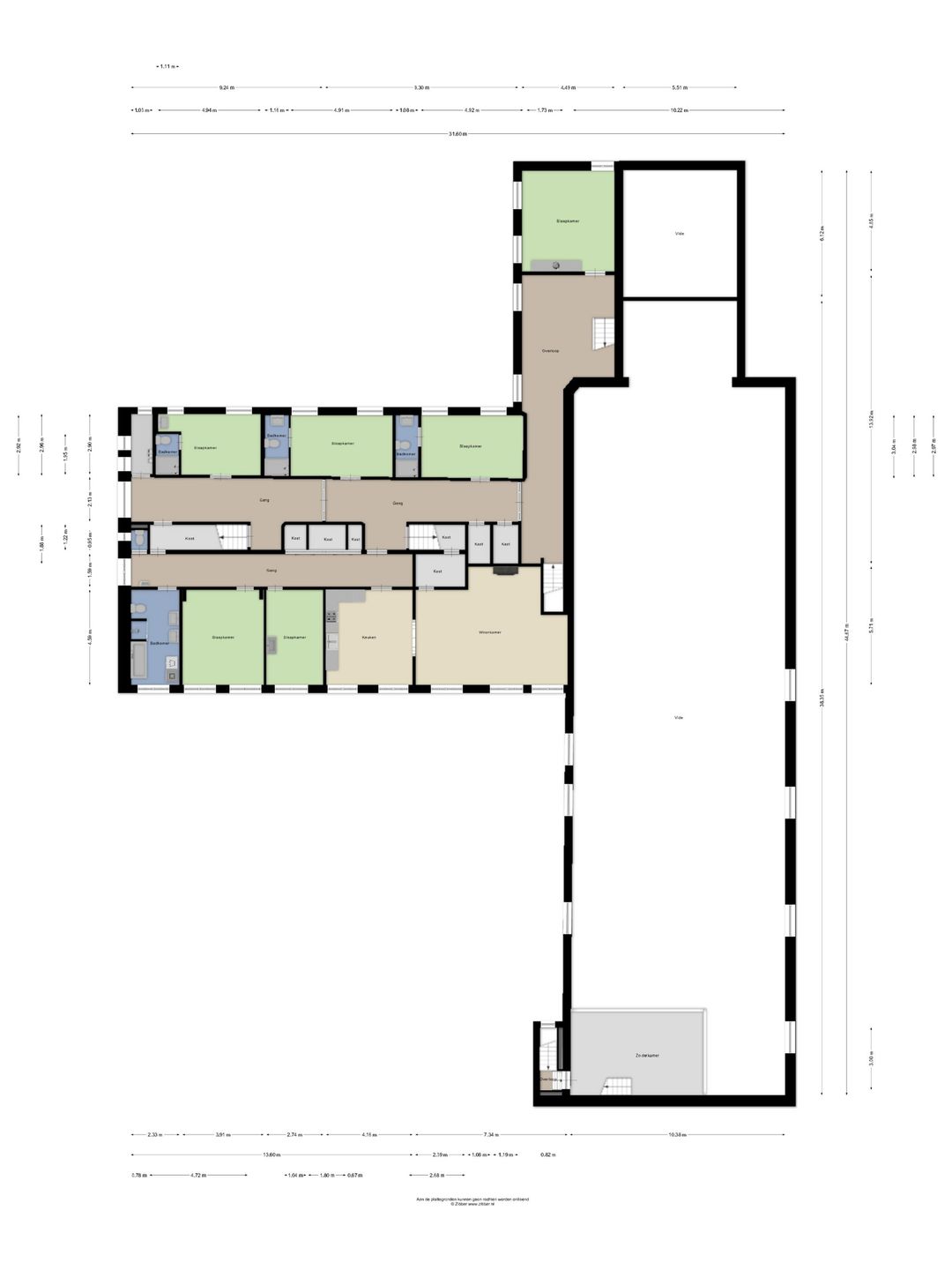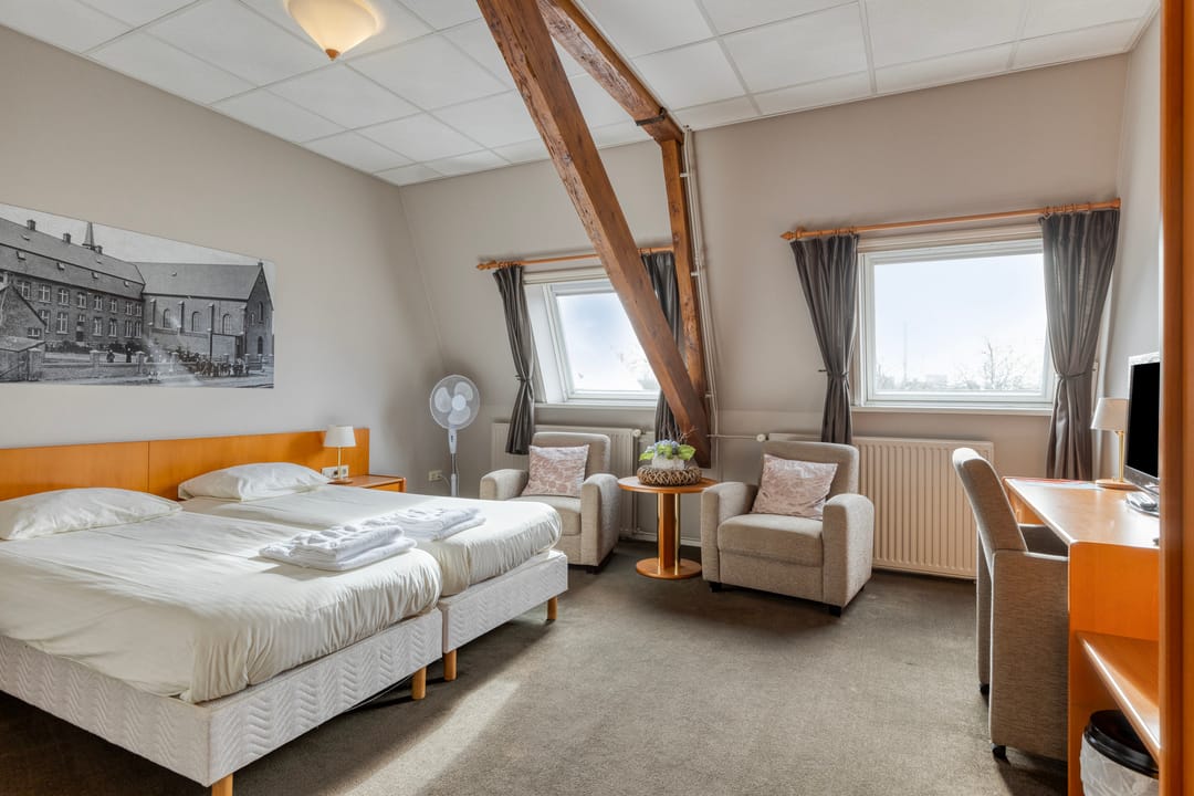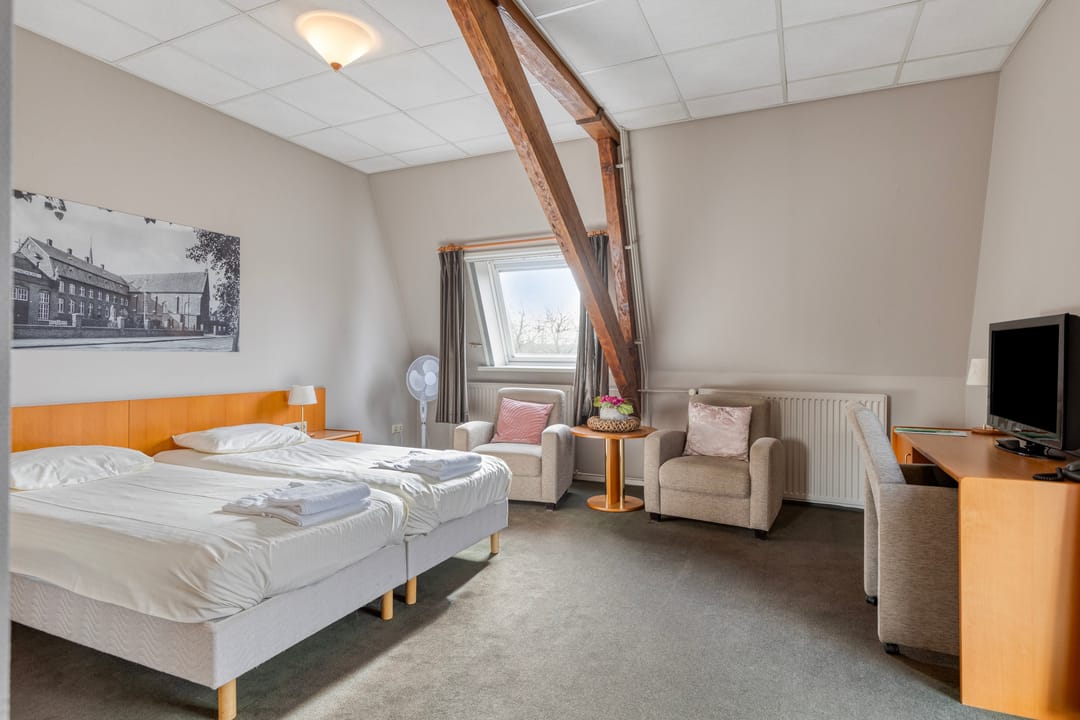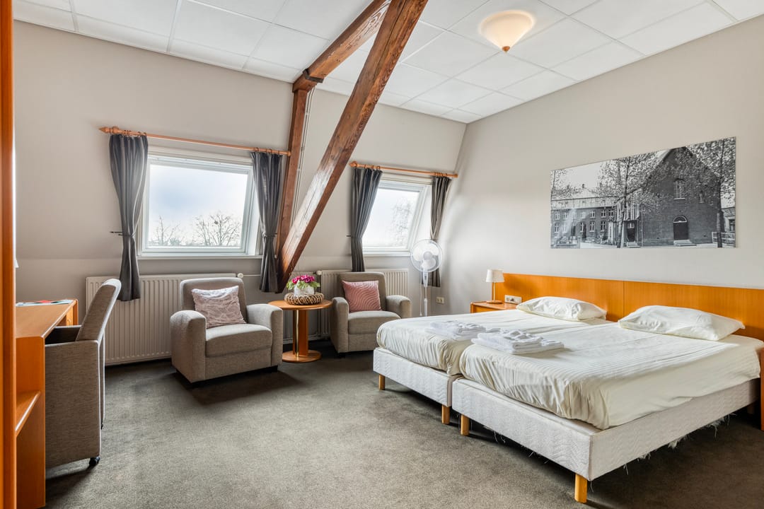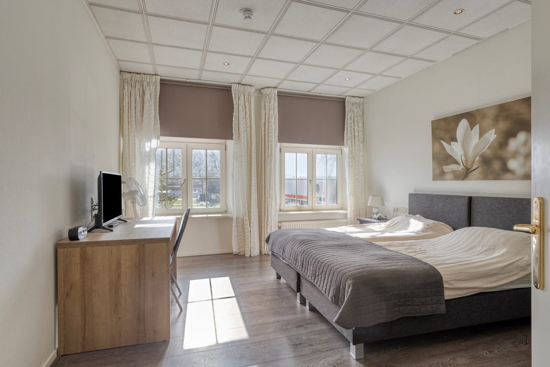 De tien hotelkamers zijn verzorgd ingericht en allen voorzien van een eigen badkamer. Deze kamers worden momenteel verhuurd aan een nabijgelegen hotel, wat zorgt voor een stabiele invulling van het gebouw. Dankzij de omvang van het pand zijn er daarnaast nog diverse ruimtes aanwezig die momenteel niet volledig worden benut, waardoor uitbreiding of herontwikkeling tot de mogelijkheden behoort.