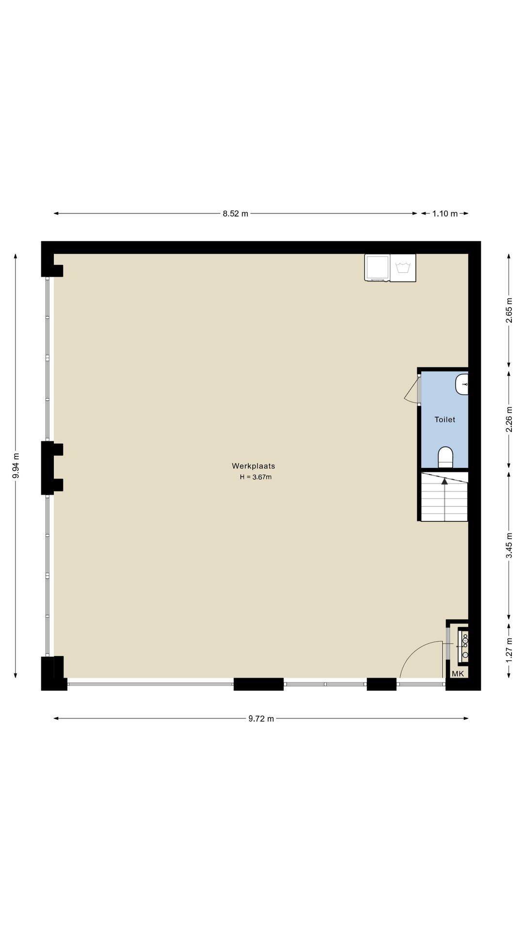De unit is verdeeld over in totaal drie bouwlagen en biedt volop mogelijkheden voor een combinatie van opslag, werkplaats, kantoor of showroom.