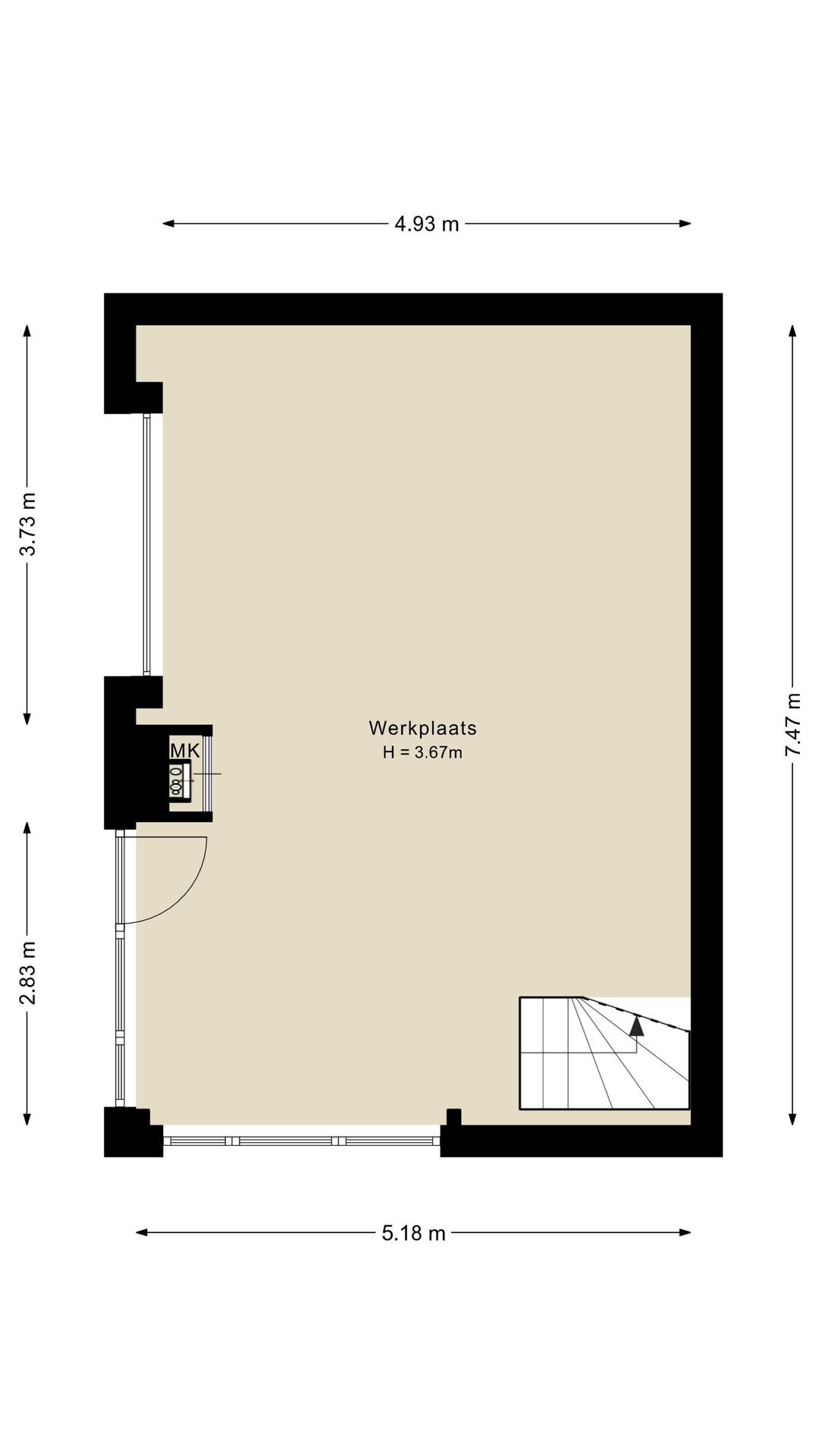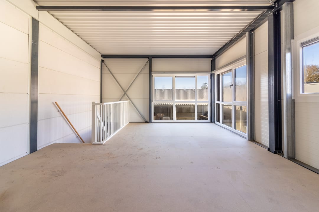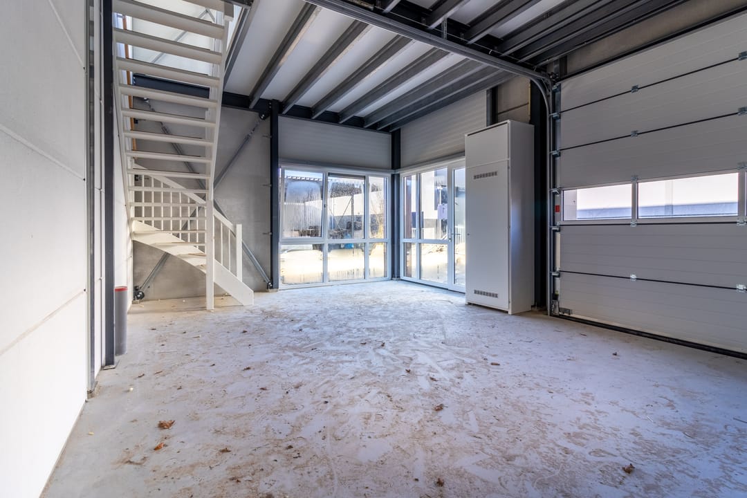 De bedrijfsunit bestaat uit een praktische bedrijfsruimte op de begane grond met een overheaddeur en een verdiepingsvloer die uitstekend geschikt is voor kantoor, opslag of een andere invulling die past bij jouw bedrijfsvoering.