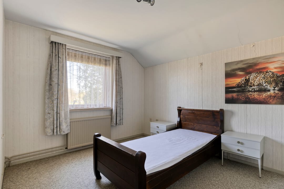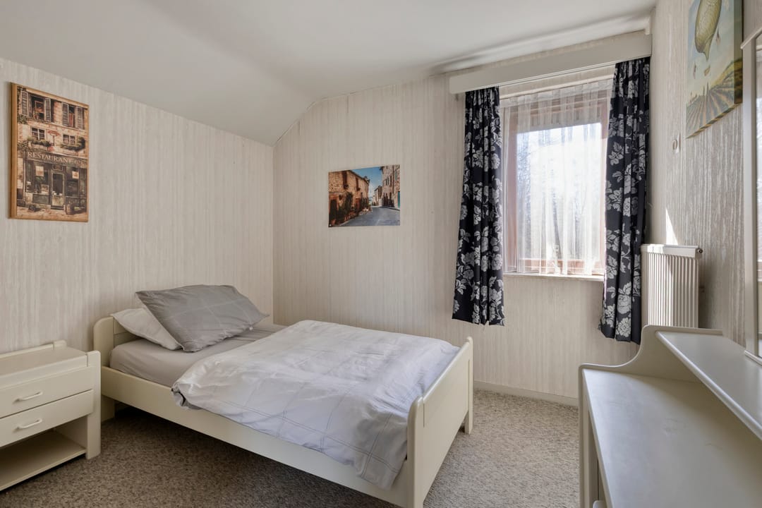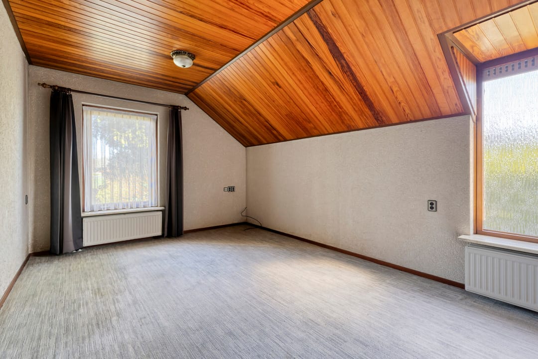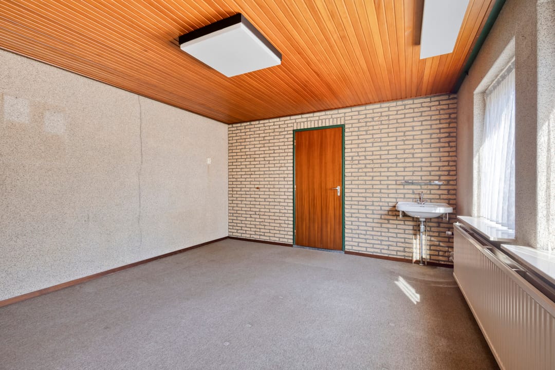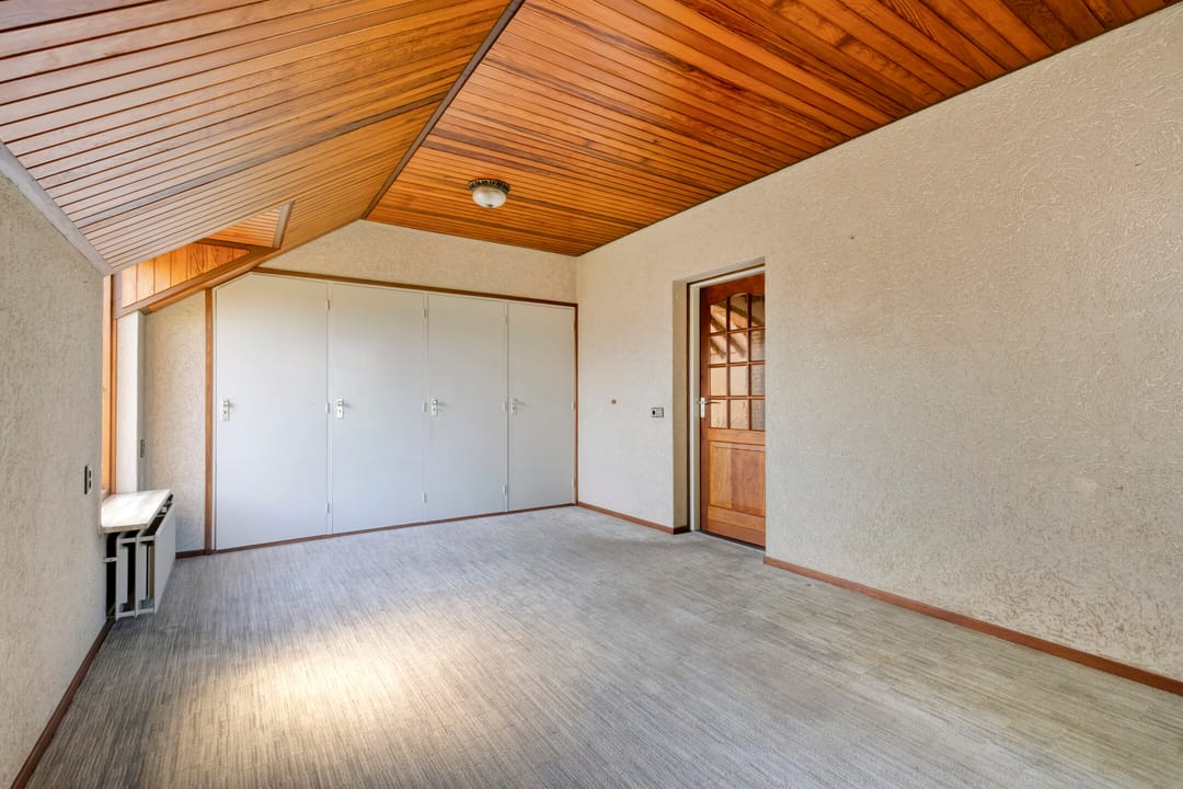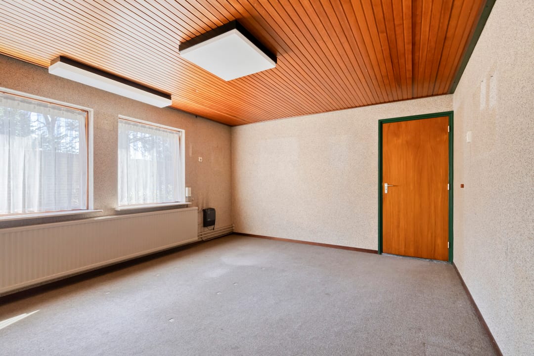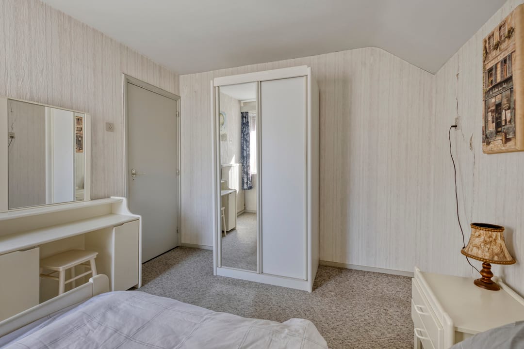 Aangrenzend aan de woonkamer bevindt zich een tweede slaapkamer met inbouwkasten. Deze ruimte is flexibel te gebruiken en leent zich uitstekend als speelkamer, kantoor of hobbyruimte.