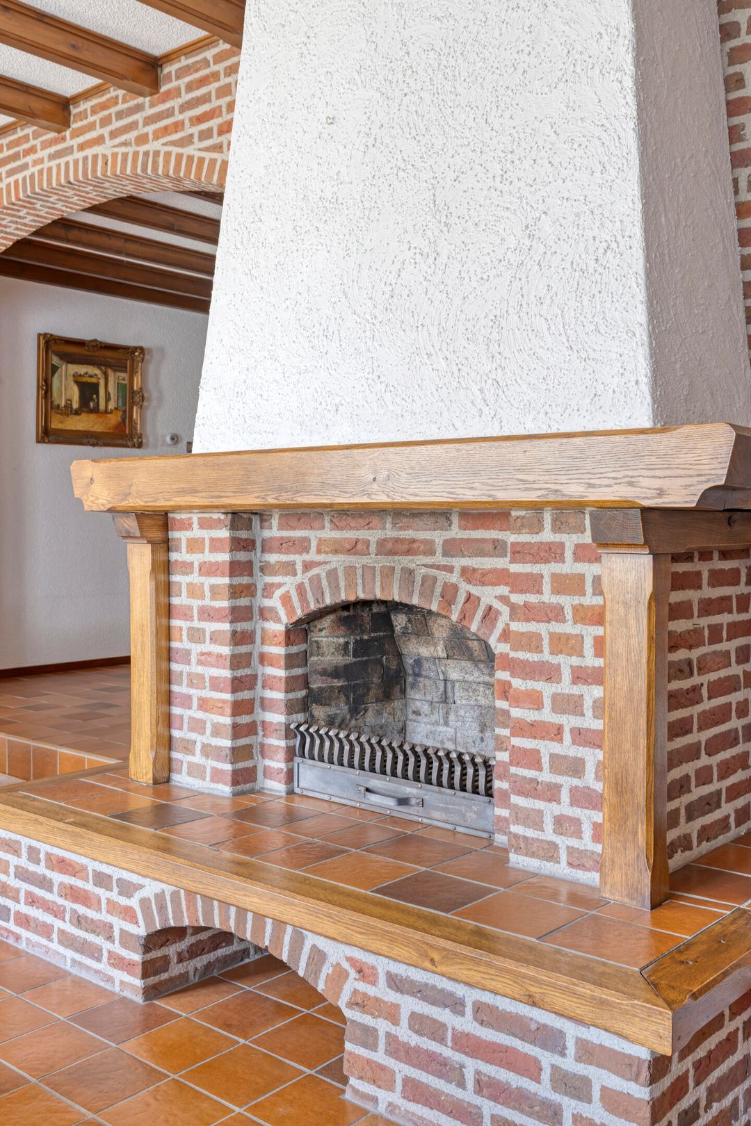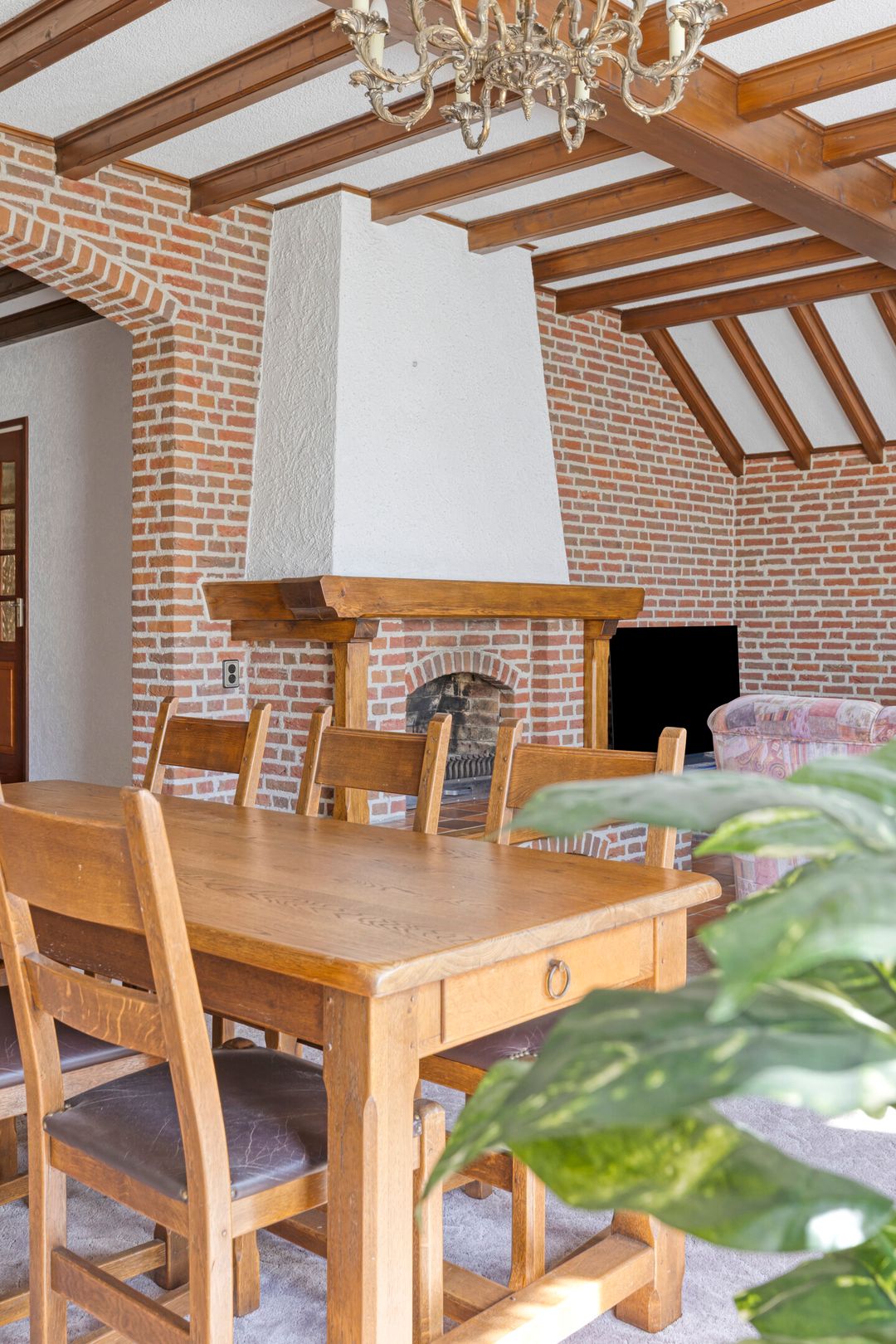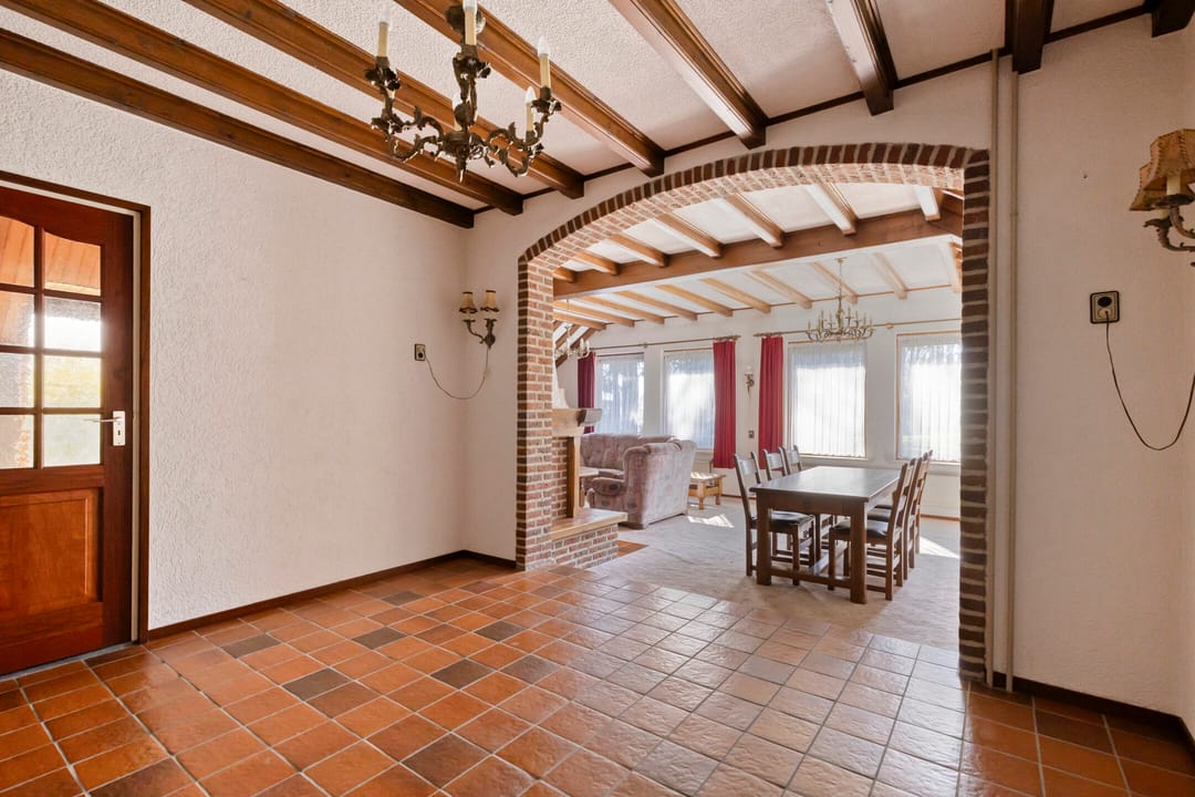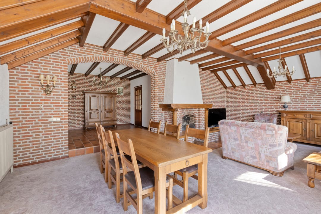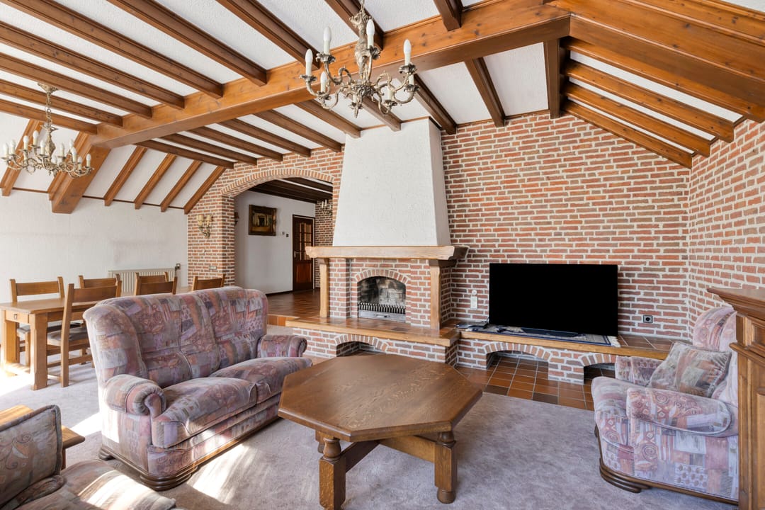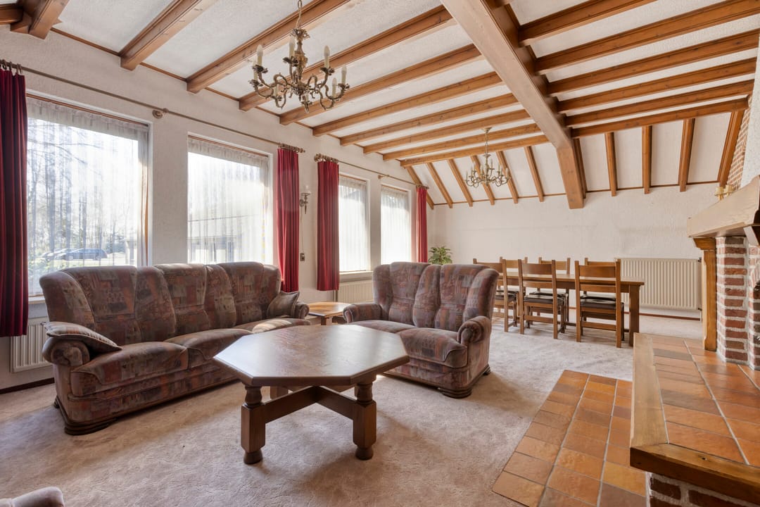 Vanuit de keuken heeft u toegang tot de ruime woonkamer. De woonkamer is voorzien van een open haard en vormt een sfeervolle leefruimte met zicht op de tuin.