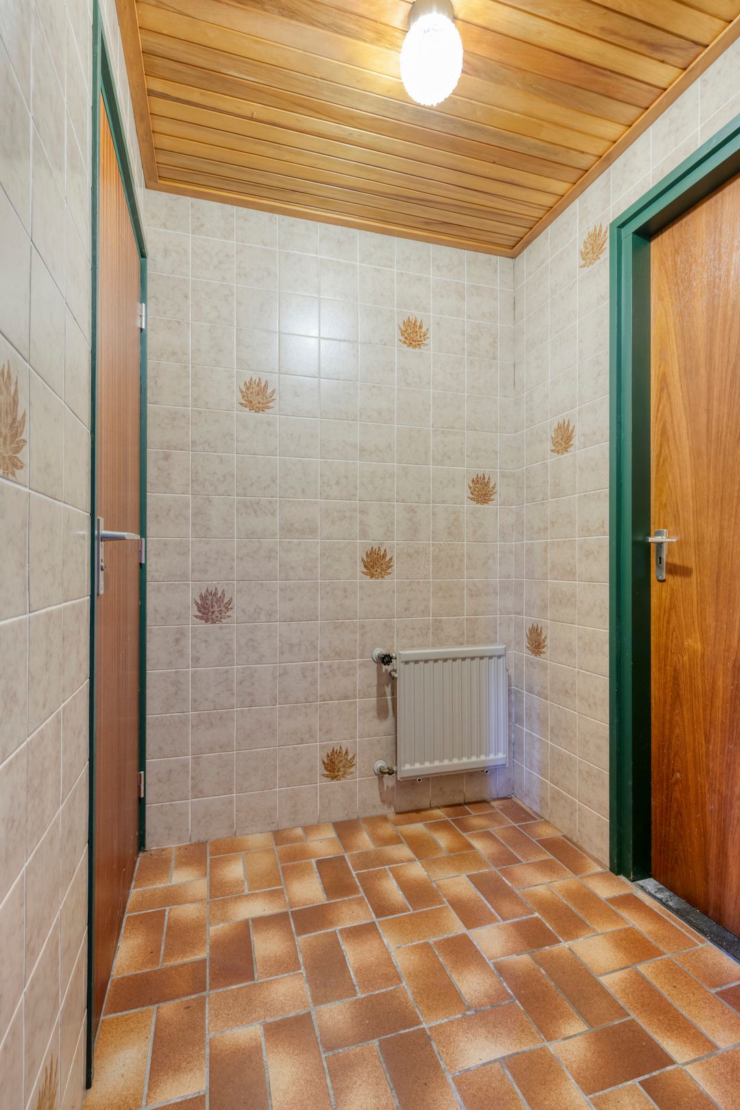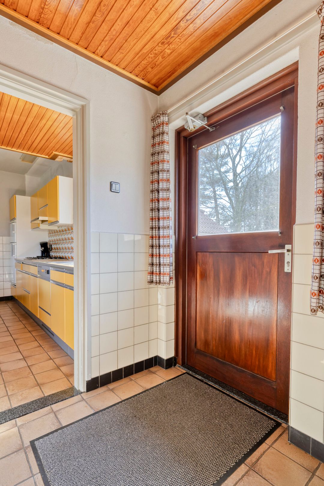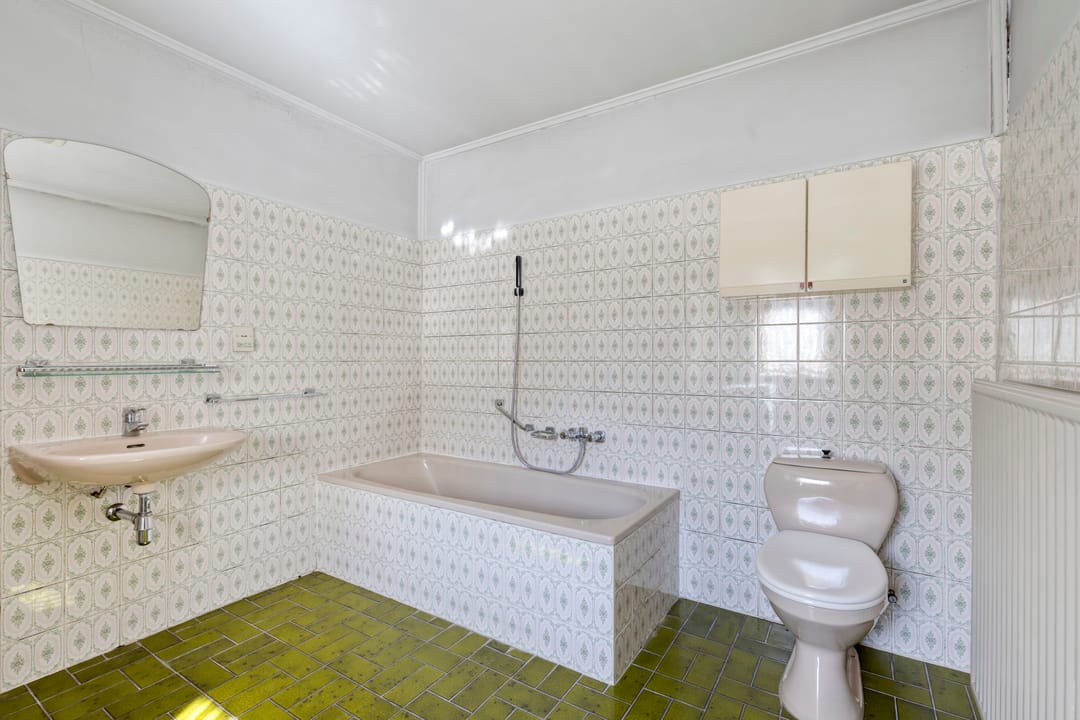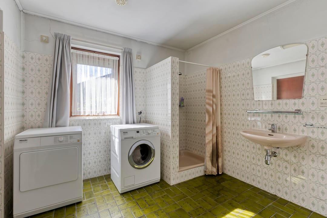 Via de keuken bereikt u de achterentree, met een separate toiletruimte, een praktische ruimte met de opstelling van de cv-ketel en aansluitend de ruime badkamer.