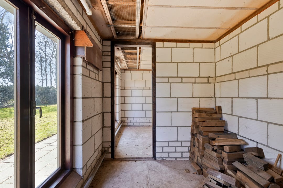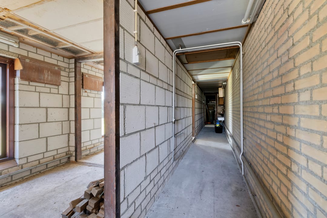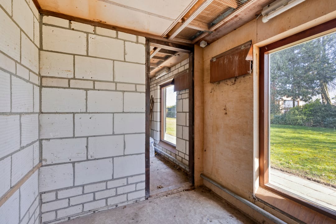Langs de zijkant van de grote loods loopt een gang met meerdere afzonderlijke bergingen. Deze ruimtes betreffen voormalige duivenhokken en zijn ideaal voor opslag of het onderbrengen van diverse hobby- of bedrijfsactiviteiten. Mocht u er een open ruimte van willen maken dan is dit ook mogelijk, omdat de tussenwanden geen dragende functie hebben.