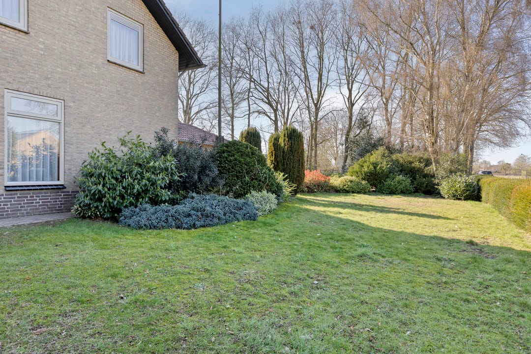 Rondom de woning ligt een royale tuin die rust, privacy en een groene woonomgeving biedt. Het royale perceel biedt daarnaast mogelijkheden voor verdere inrichting naar eigen wens. De combinatie van woning, bedrijfsruimte en buitenruimte maakt dit een veelzijdig object met veel potentie.