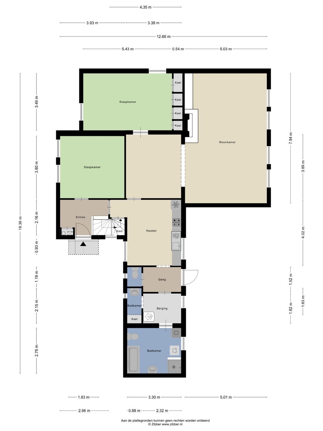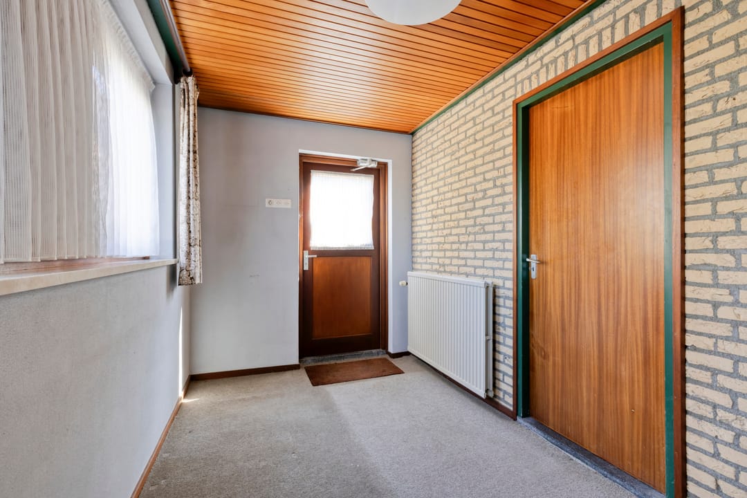 U betreedt de woning via de entree, waar zich de meterkast, de vaste trap naar de eerste verdieping en de doorgang naar de woonkeuken bevinden. Vanuit de entree heeft u tevens toegang tot een slaapkamer, gelegen aan de voorzijde van de woning.