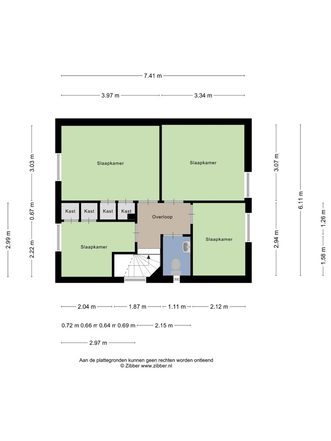 De eerste verdieping is bereikbaar via de vaste trap vanuit de entree. U komt uit op de overloop, die toegang biedt tot vier slaapkamers en een separate toiletruimte. Twee slaapkamers zijn voorzien van praktische inbouwkasten. Deze verdieping biedt volop mogelijkheden voor slapen, werken of hobbygebruik.