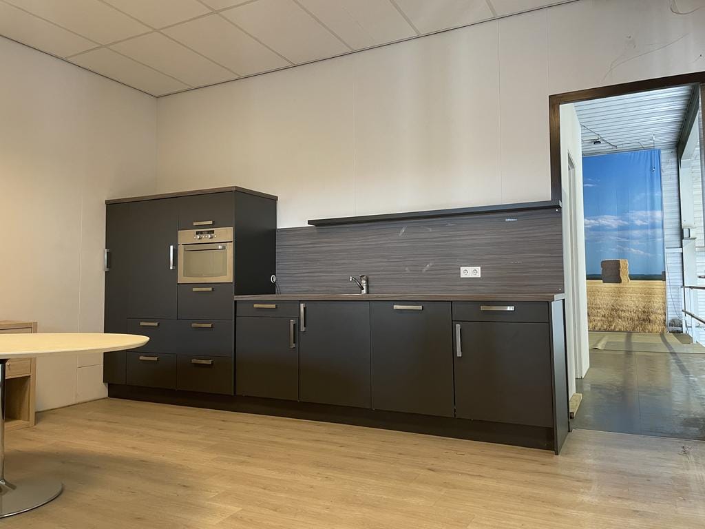 • Kantoor en kantine afgewerkt met laminaatvloer en systeemplafond.