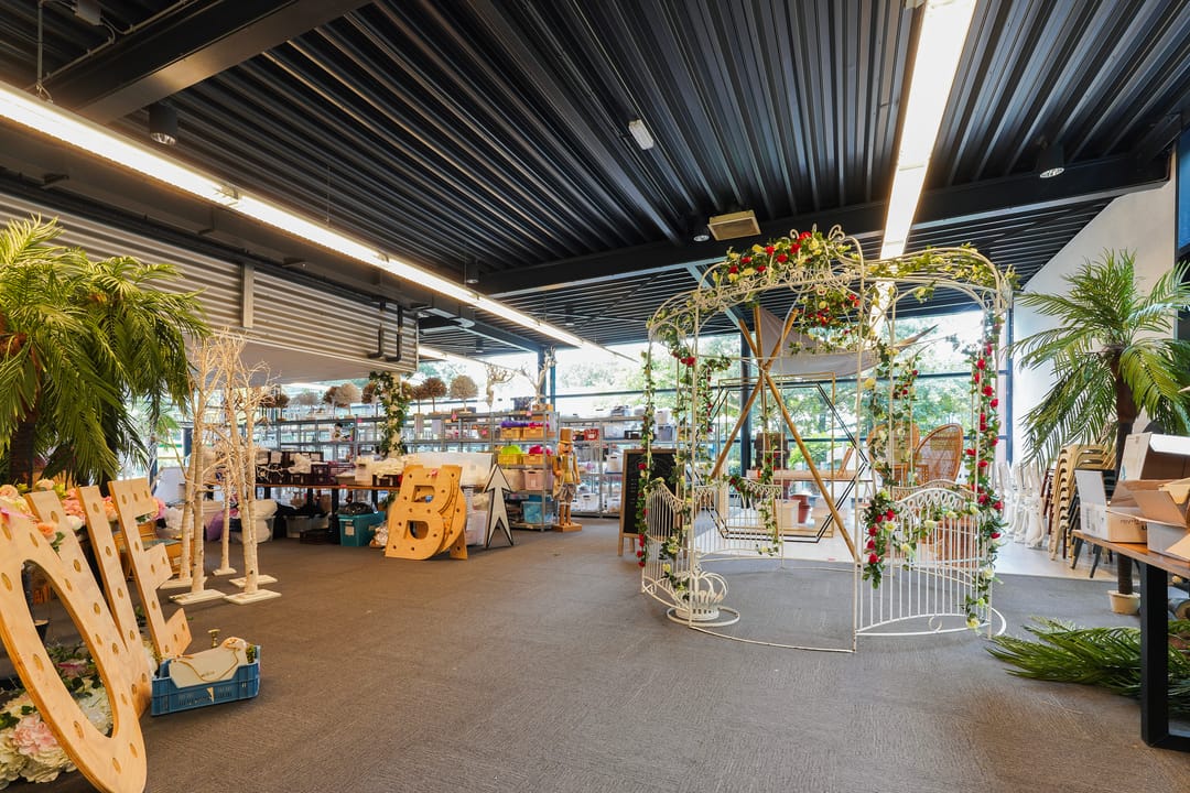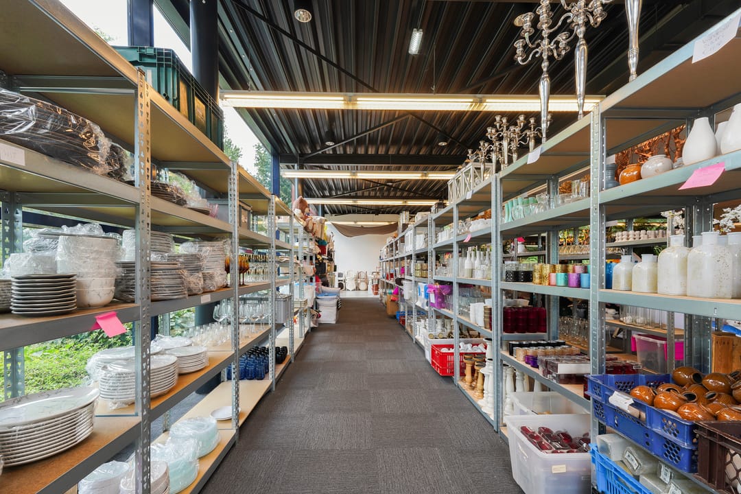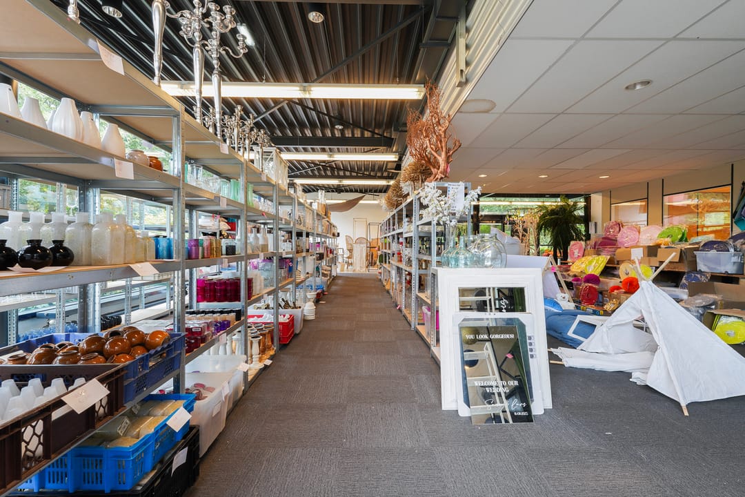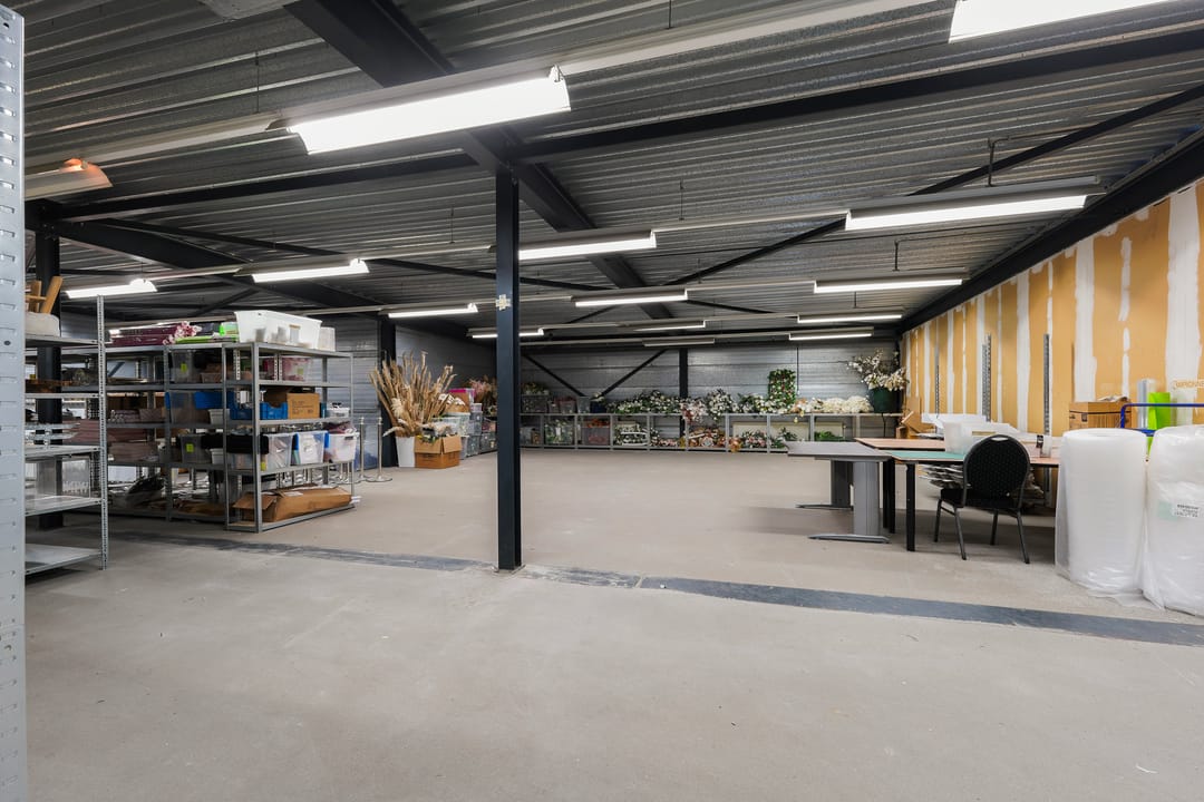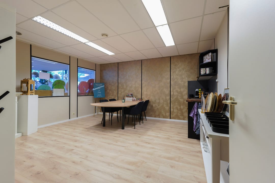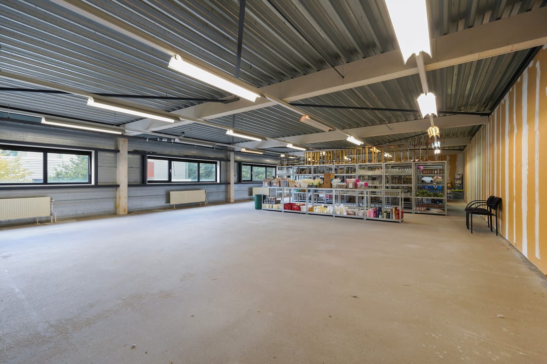 Ruime bedrijfsruimte met showroom en kantoorruimten.