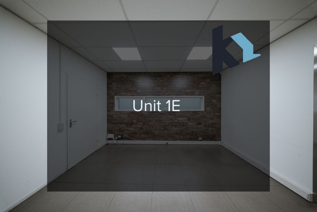 + Unit 1E beschikt momenteel niet over een actieve overheaddeur; hier is een voorzetwand geplaatst.