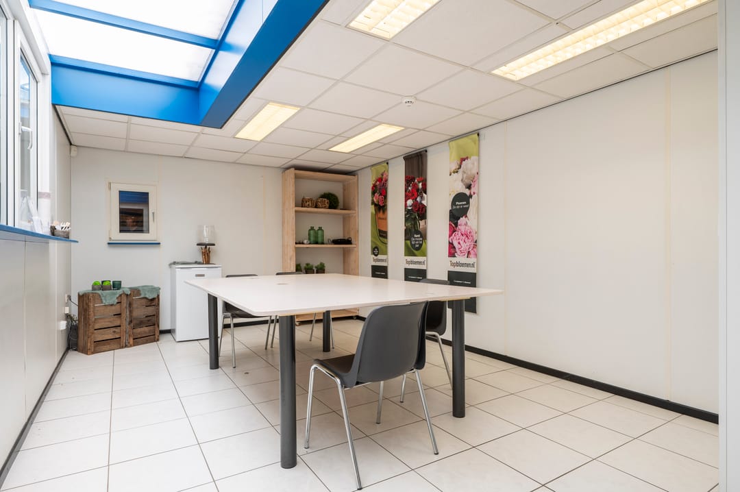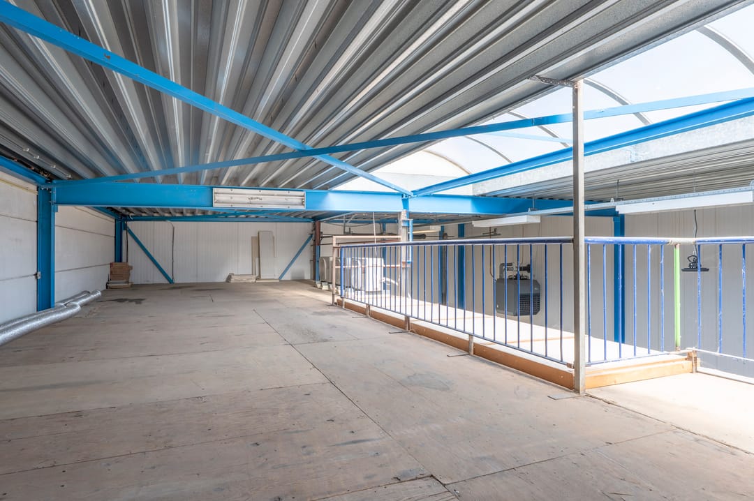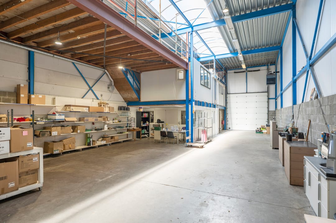 Bedrijfspand bestaande uit ca. 300 m² bedrijfsruimte (waarvan ca. 80 m² op de zolder gelegen is) en ca. 50 m² kantoorruimte. De loods beschikt over 2 (handmatige) overheadpoorten, lichtstraat en gasheaters. De kantoorruimtes zijn verdeeld over de begane grond en de eerste verdieping. Deze ruimtes zijn v.v. airco. Boven de kantoren is nog een verdiepingsvloer gesitueerd van ca. 80 m² t.b.v. opslag. Verder is er een ruim (omheind) buitenterrein beschikbaar van ca. 500 m².