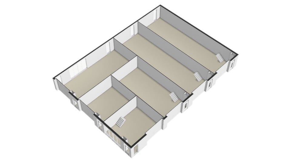 De bovenverdieping is nog in casco staat, klaar om voor eigengebruik af te bouwen en in te richten.