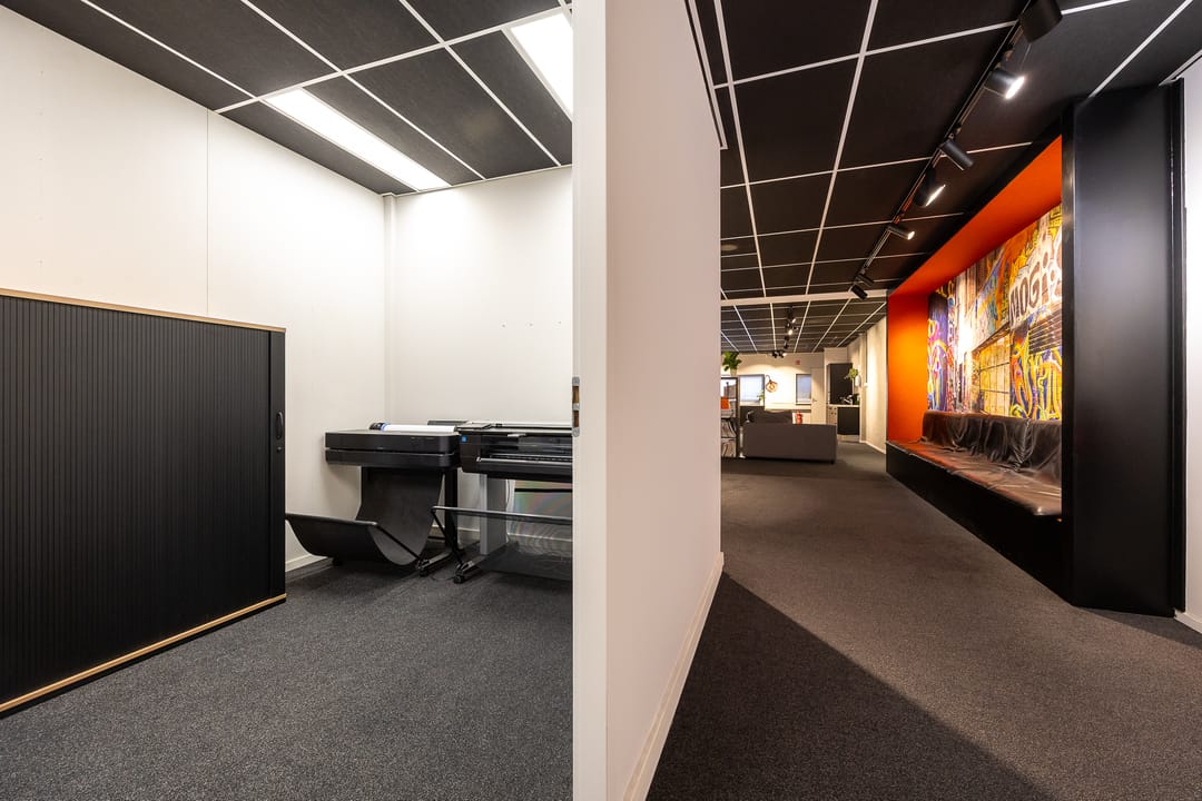 Circa 112 m² entree-/kantoor-/showroomruimte begane grond € 100,00 per m² exclusief servicekosten en btw per jaar.
